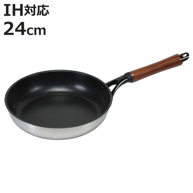 フライパン 24cm IH対応 ファストクック 2層鋼ダイヤモンドコート ( ガス火対応 オール熱源対応 炒め鍋 ふっ素加工 軽い 24センチ 浅型 いため鍋 フッ素加工 ステンレス アルミ 2層構造 木柄 軽量 フライパン ih対応)