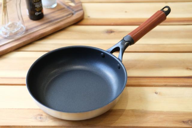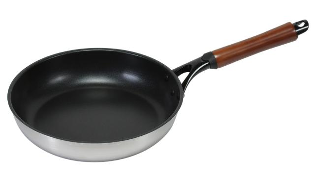 無駄のないスピード調理がかなう、アルミ+ステンレスの2層鋼フライパンです。熱伝導の良いアルミと保温力の高いステンレスを合わせているので、すばやく加熱でき、かつ全体にムラなく熱を伝えます。