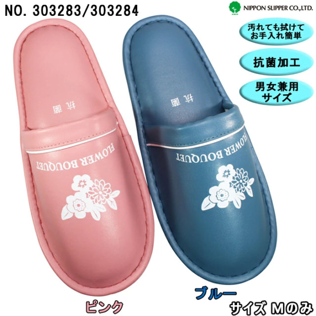 トイレスリッパ フラワーブーケ 303283 ピンクMサイズ・303284 ブルーMサイズ トイレ用スリッパ 抗菌スリッパ ビニールスリッパ 花柄トイレスリッパ かわいい 定番 シンプル オールシーズン ニッポンスリッパ