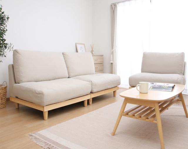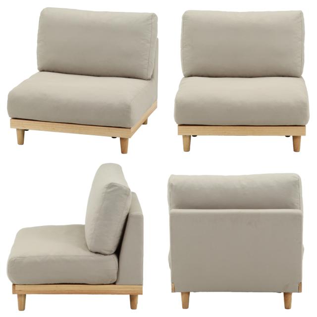 ゆったりと余裕をもって座れる1人掛けソファです。木の温もりを感じるウッドフレームがアクセントになっています。アームレスでスッキリとしていて、お部屋に圧迫感を与えず、リラックスして過ごせる時間を提供してくれます。