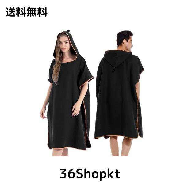 ◆商品名:[unizom] サーフィン ポンチョ お着替え ラップタオル 大人用 サウナ バスローブ レディース メンズ マイクロファイバー ブラック