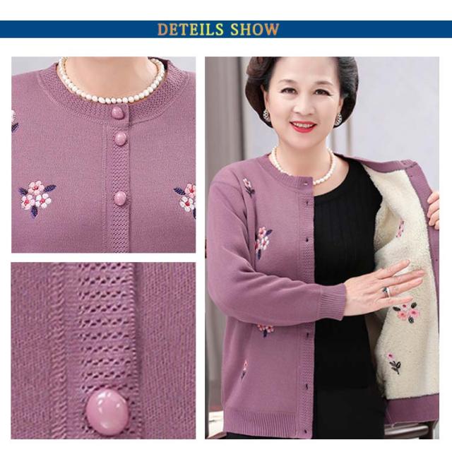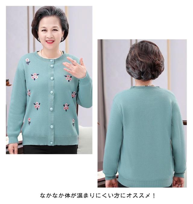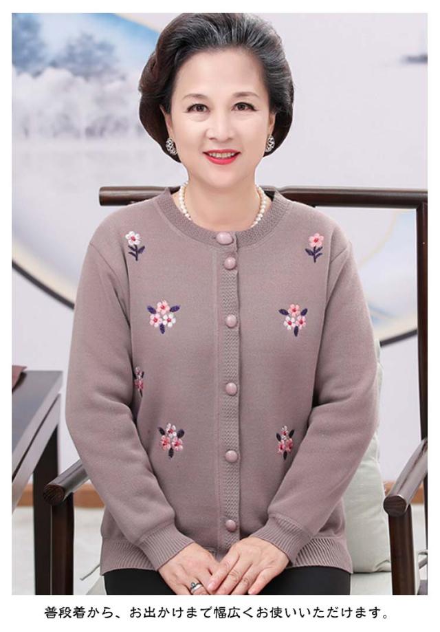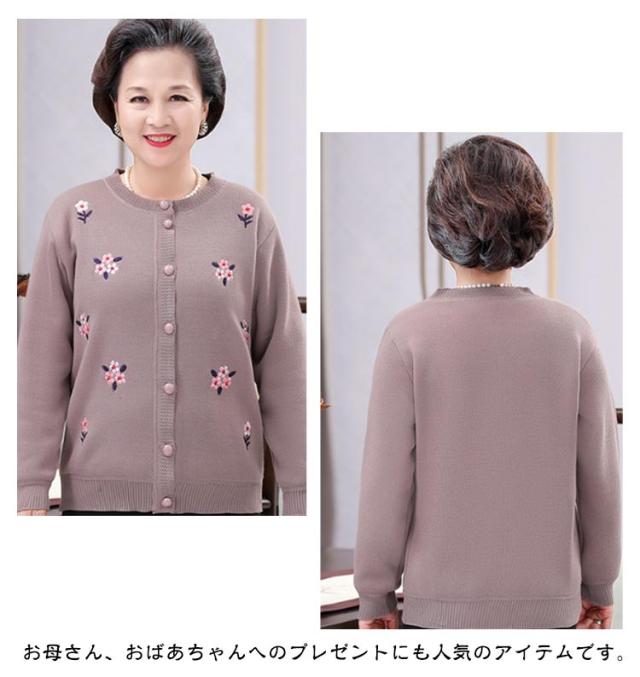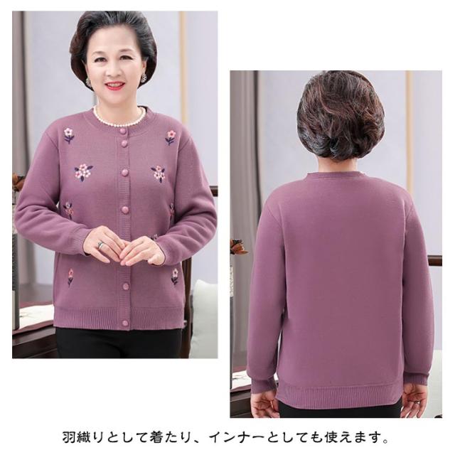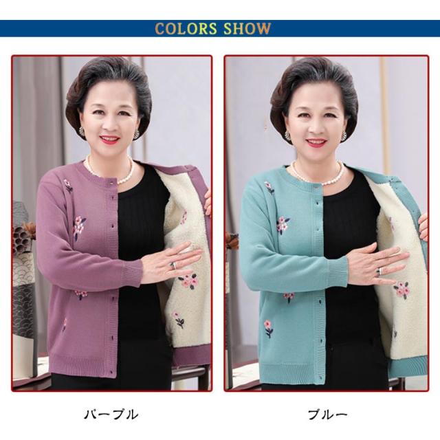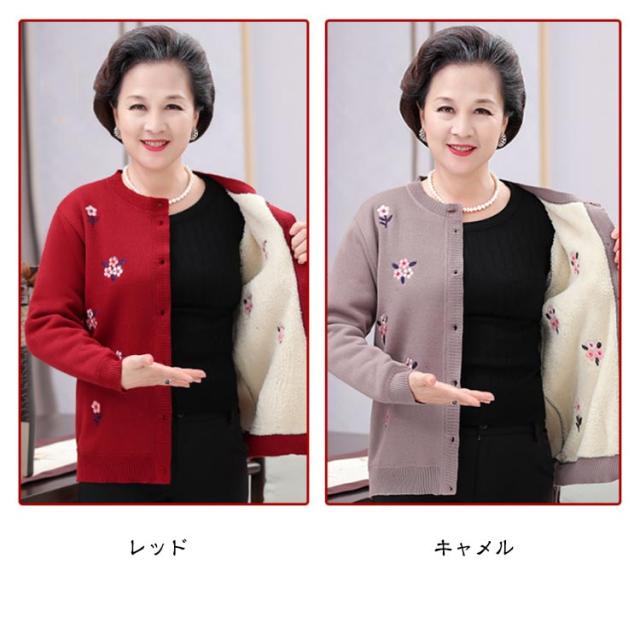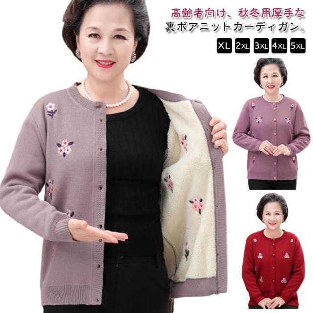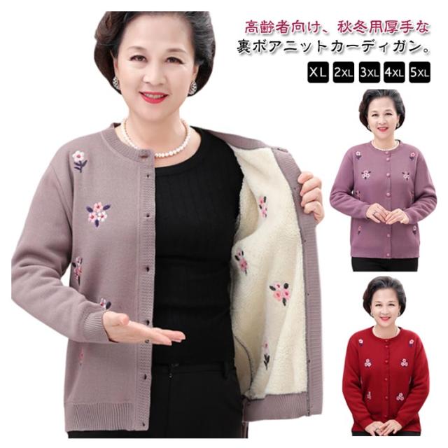 裏ボア ニット レディース ニットカーディガン あったか おばあちゃん セーター 花柄 防寒 暖かい 前開きボタン 節電 寒さ対策 秋冬 プレゼント ミセス 婦人服 シニアファッション 祖母 お年寄り 高齢者 老人 大きいサイズ お誕生日