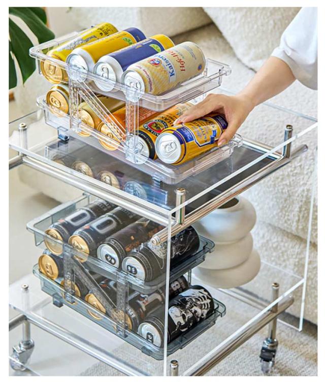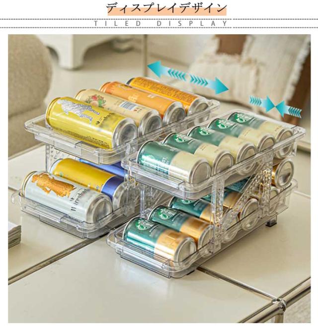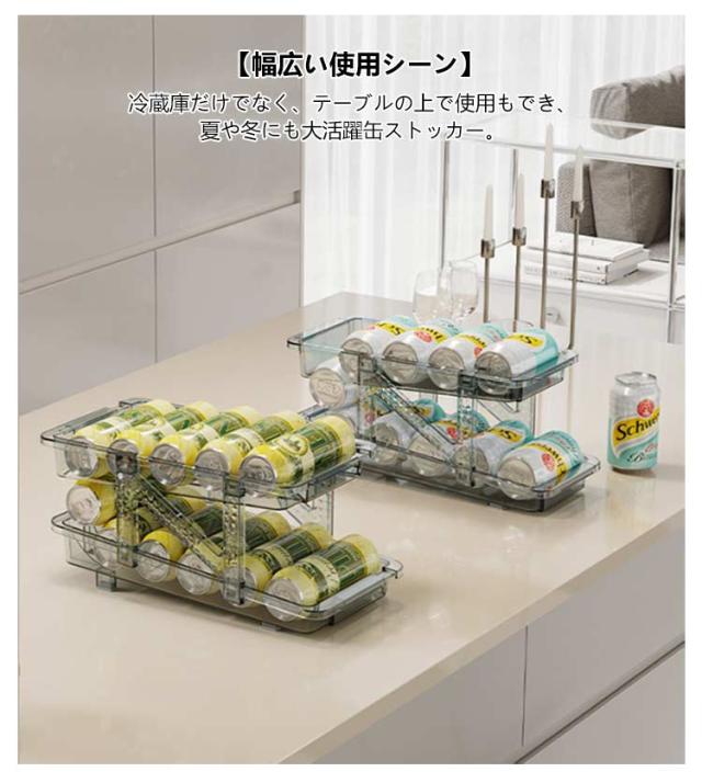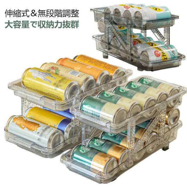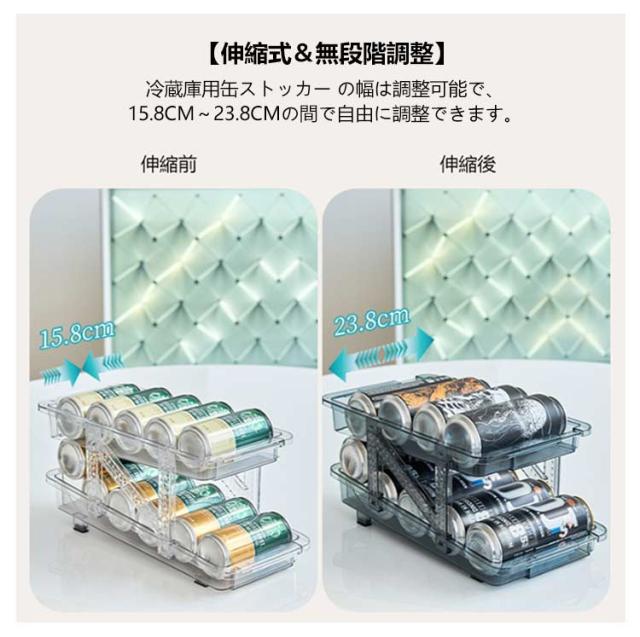 缶ストッカー 伸縮式 500ML 250ML 缶用 350ML 冷蔵庫用 10本対応 ュース収納ラック 缶収納ラック 可動式 缶ビールホルダー 二重仕上げラック 収納ラック 取り出しやすい 省スペース 缶ストッカー 整理特集 キッチン収納 シンプル おしゃれ