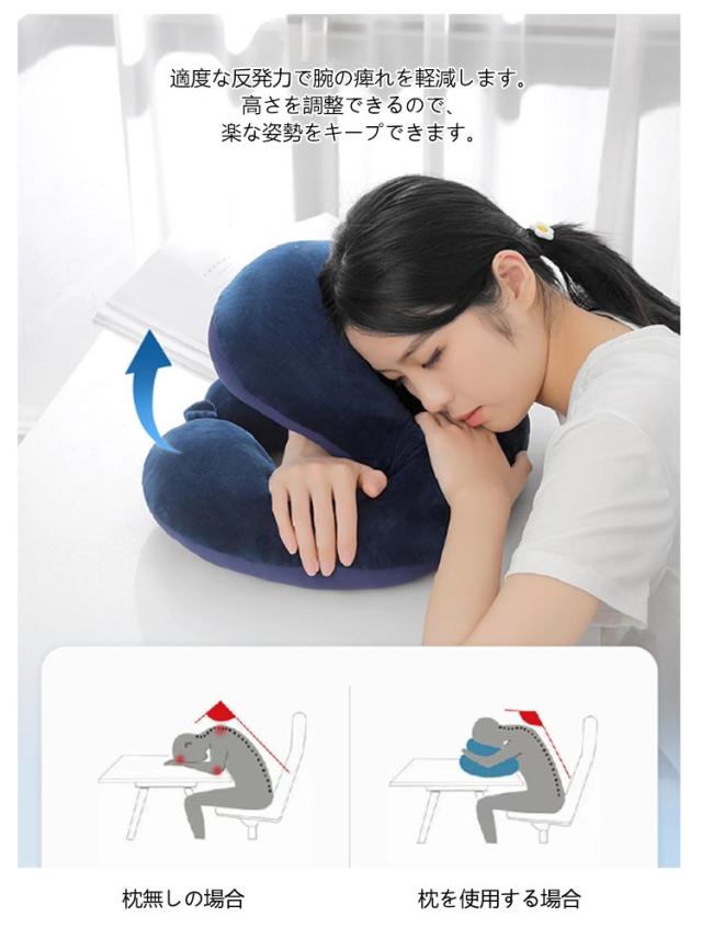 | 使い方4WAY!低反発のお昼寝まくら 起毛・冷感リバーシブル仕様 新しく進化したボタン式 洗濯機で洗える カバー取り外し可能 全11カラー 仕事の合間や勉強中、旅行中に快適に仮眠を取りたいなら、あなたの快眠をサポートする、快適な昼寝アイテム。 受験勉強や長時間のデスクワーク中の仮眠に、また旅行やお昼寝タイムに最適なアイテムです。 リラックスしたいときの必需品、充実した休息時間をお楽しみください。 4WAYの使い方で 自分に合った体勢を選べます。形状や素材にもこだわり、昼寝の質を向上させました。 1 【うつ伏せ】 穴が開いているので、呼吸しやすい設計です。 2 【横向き】 クッション性があるので、腕がしびれにくいです。 3 【もたれ掛け】 椅子の背もたれに掛けてヘッドレストに、使わない時はそのまま収納。 4 【腰当て】 低反発クッションデザイン、使わない時は腰当てクッションとしても使えます。 <お勧めポイント> うつぶせ寝に最適: うつ伏せで心地よく休めるように設計されたピロー。デスクや椅子での昼寝にもぴったりです。 デスクやオフィスに最適: デスクや会社での短い休憩に最適なサイズ。オフィスでも気軽に使えます。 快適なクッション性: 軽量でありながら、快適なクッション性を提供。長時間の使用でも疲れにくい設計です。 洗えるカバー: 取り外し可能なカバーは洗濯機で簡単に洗えるので、いつでも清潔に保てます。 便利なデザイン: 腰当てや背もたれとしても使える多機能デザイン。仮眠だけでなく、さまざまなシーンで活躍します。 肩こり・腰痛対策: 快適なサポートで肩こりや腰痛の緩和にも役立ちます。 ワンタッチでU字型に変形昼寝専用設計: ボタン式で簡単操作、美しい見た目でしっかりフィット。 <details> 1.高品質ファスナー 滑らかで引きやすい。カバーは取り外して洗濯 も簡単。 2.弾力のあるPP綿 弾力のあるPP綿を使用し、変形しにくく柔らかで快適 3.高品質な生地 肌なじみが良く、滑らかな手触り 4.隠しファスナー 機能性と美しさを両立 | |
