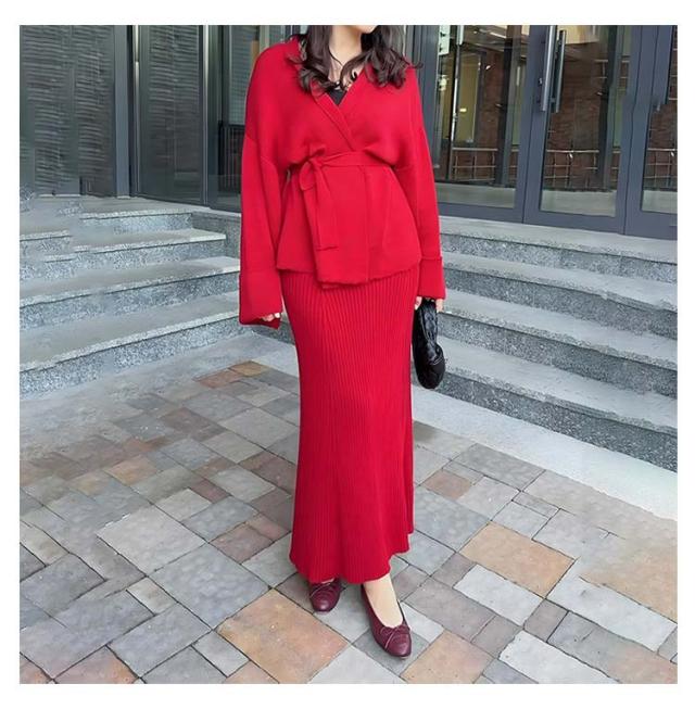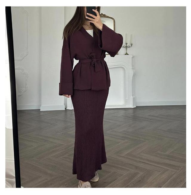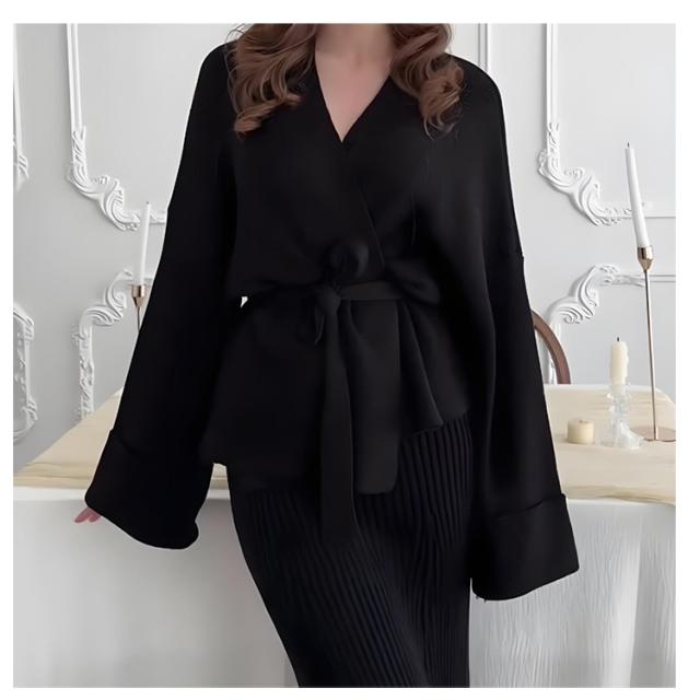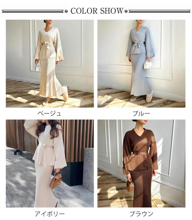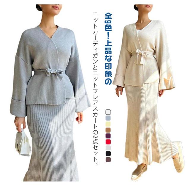 ニットセットアップ レディース ニット カーディガン フレアスカート 長袖 マーメイド リブニットスカート ベルト付き フレア袖 ニットカーディガン トップス おしゃれ きれいめ フォーマル エレガント 入学式 卒業式 結婚式 お呼ばれ 大きいサイズ 秋 冬 送料無料