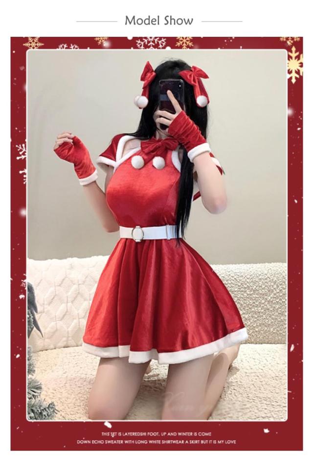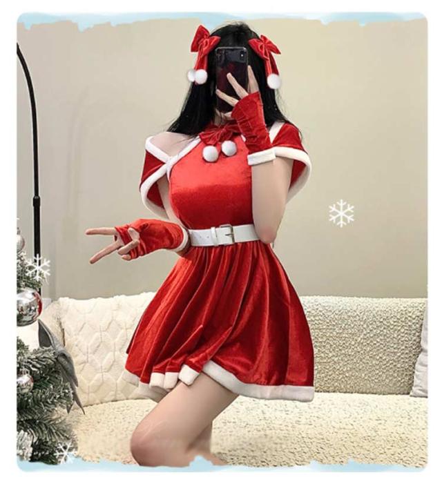 | 可愛いクリスマスコスプレ衣装。 4点セット:リボン髪飾り、マント、ワンピース、手袋。 ふわふわ生地感で着心地もよい。 クリスマスはもちろん、文化祭、学園祭、イベント、こすぷれ、ハロウィンにも大活躍。 | |