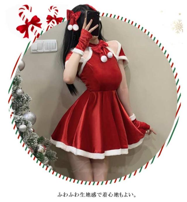 サンタ衣装 4点セット サンタ コスプレ セクシー ポンチョ マント リボンヘアアクセサリー ワンピース 手袋 サンタ コスチューム サンタコスプレ レディース 可愛い サンタコス クリスマス かわいい サンタクロース ハロウィン 余興 送料無料
