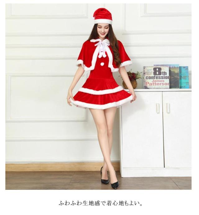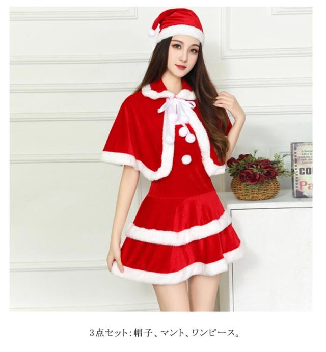 サンタ衣装 3点セット サンタクロース サンタ コスプレ セクシー 帽子 ポンチョ マント ワンピース サンタ コスチューム サンタコスプレ レディース 可愛い サンタコス クリスマス かわいい ハロウィン 余興 送料無料