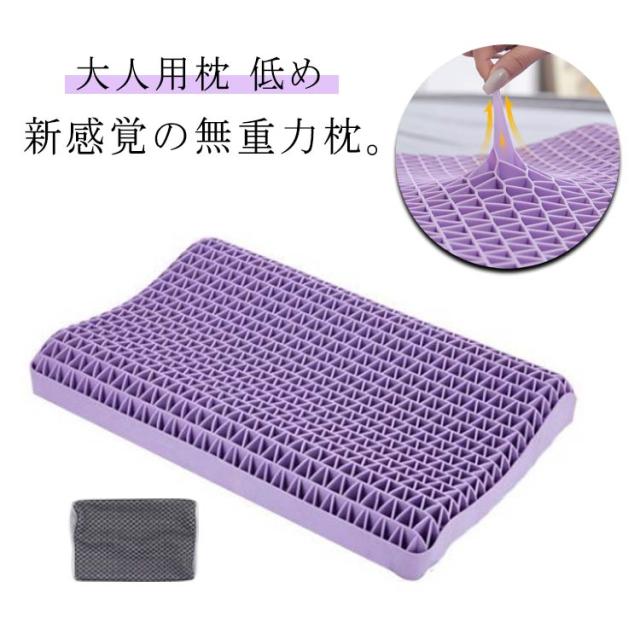 | 新感覚の無重力枕。【大人用枕】【低め】 新感覚の高機能ジェル素材が、宙に浮いたような無重力の寝心地を実現! 本体は医療器具にも使用されるTPE (熱可塑性エラストマー) 素材を使用。丈夫で柔らかく、しなやかな弾力性が特徴の新感覚素材の枕です。柔軟性・弾力性に優れたジェル素材がどんな首や頭の形状にも吸い付くようにフィットします。 TPEは10年経っても劣化しにくいと言われる高耐久素材。水で丸洗いもOKなので、いつでも清潔にご使用いただけます。 ムレを防いで通気性も抜群。人間工学に基づいて作られた特殊な格子構造は、頭部の形と位置に合わせて瞬時にフィット。 快適な寝姿勢を実現します。 専用カバー付き。 | |