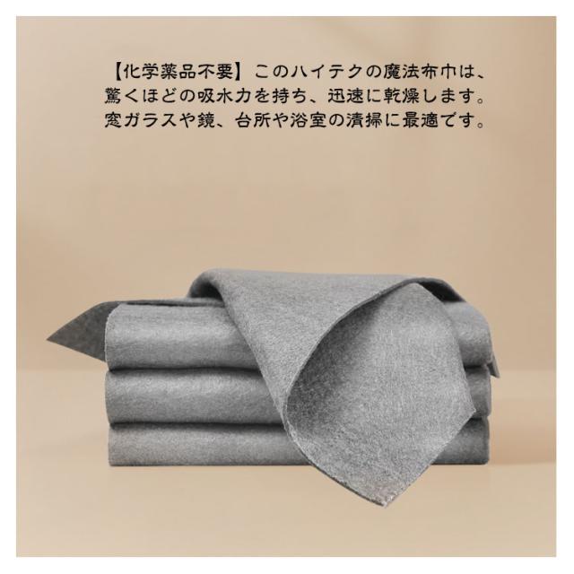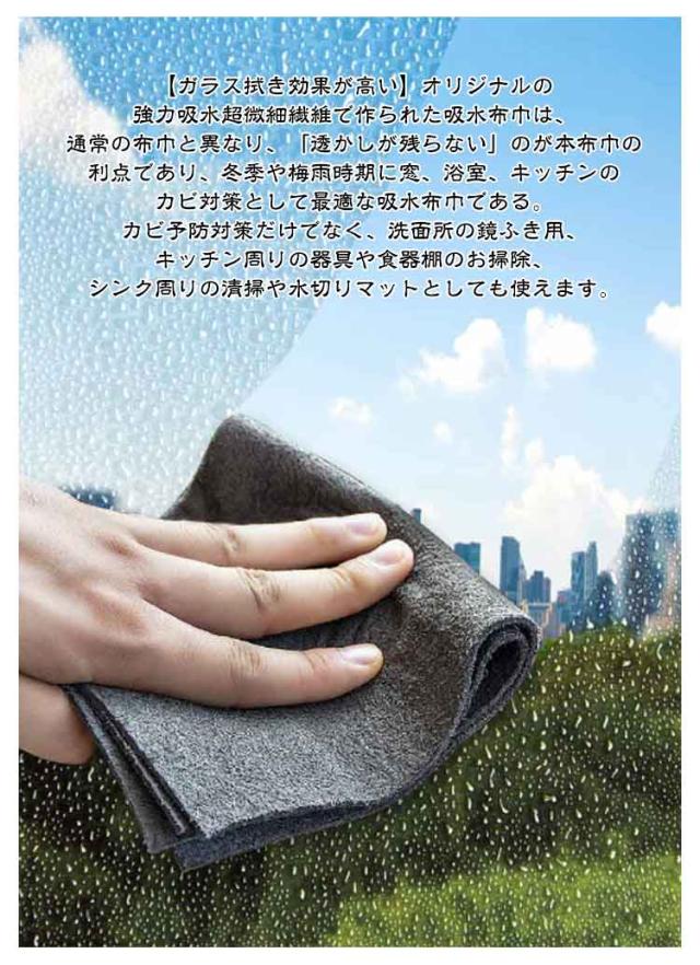 | 拭き跡が残らない ハイテク魔法のガラス用布巾 【20枚セット】 20×25cm 20×30cm 30×30cm 30×40cm 40×50cm 【ガラス拭き効果が高い】オリジナルの強力吸水超微細繊維で作られた吸水布巾は、通常の布巾と異なり、「透かしが残らない」のが本布巾の利点であり、冬季や梅雨時期に窓、浴室、キッチンのカビ対策として最適な吸水布巾である。カビ予防対策だけでなく、洗面所の鏡ふき用、キッチン周りの器具や食器棚のお掃除、シンク周りの清掃や水切りマットとしても使えます。 【汚れに強い】吸水性に優れ、洗剤を使わずに汚れを落とすことができる高性能なクリーニングタオル。微細な汚れや表面の汚れを簡単に除去できる超微細繊維布。水で拭くだけで汚れが落ち、洗剤と一緒に使うこともできます。 【化学薬品不要】このハイテクの魔法布巾は、驚くほどの吸水力を持ち、迅速に乾燥します。窓ガラスや鏡、台所や浴室の清掃に最適です。 【複雑な使用手順はありません】濡らし、拭き、洗い流し、繰り返し使用するだけです。複雑な手順は必要ありません。必要な場所をきれいにするために使用できます。通常清潔に使用しているように、乾湿両用です。 【多用途】窓、コンロ、車、フロントガラス、家具、家電など、さまざまな物に幅広く使用できます。 また、ガラス、ステンレススチール、木製家具など、さまざまな表面に使用できます。 | |