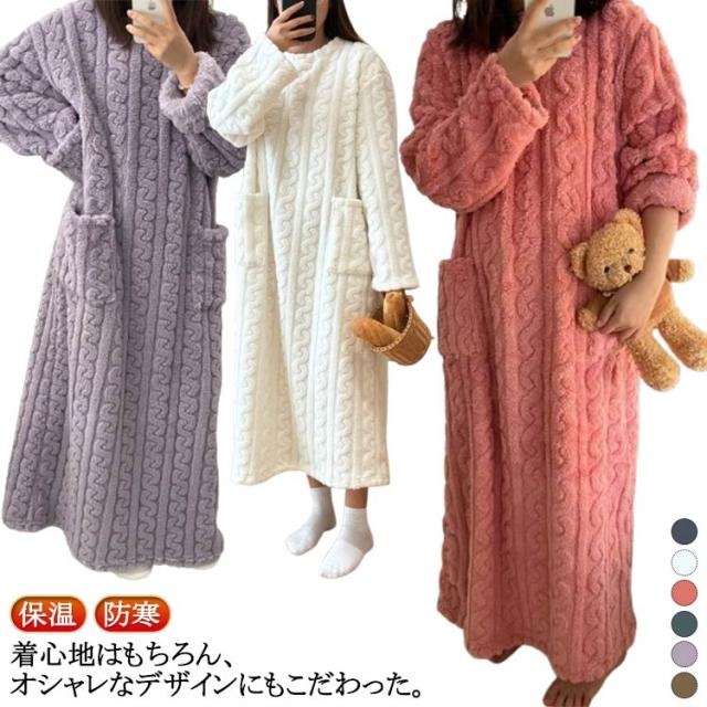 ボア レディース 長袖 ルームウエアワンピース 裏起毛ワンピース ネグリジェ 厚手パジャマ フリース ワンピース 部屋着 ルームウェア モコモコ パジャマ 暖かい ルームウエア レディース 秋冬 マキシワンピース ルームウェア おしゃれ 秋 冬 もこもこ