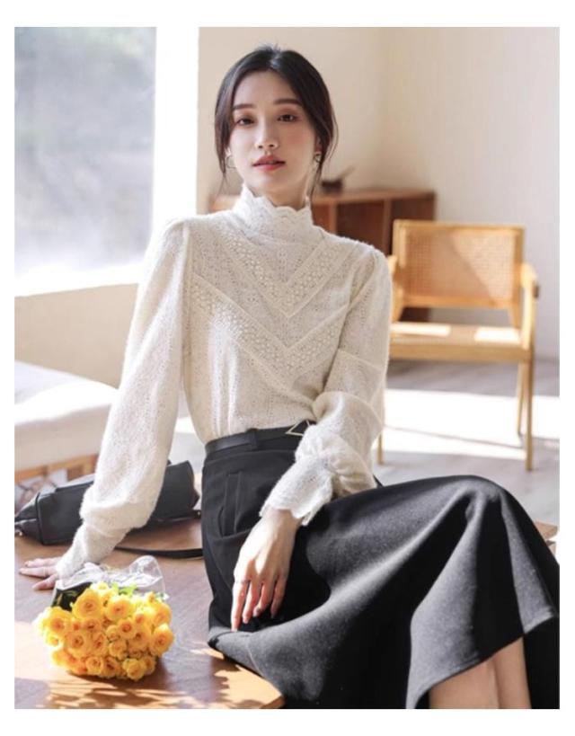 | 瞬時にこなれた表情がつくれるレーストップス。 ボリューム袖のねじれたように見えるタックがポイントの一つ。 詰まり気味のハイネックが上品な印象に、フェミニンな抜け感を演出。 華奢なレースを使用することで、大人っぽさのある雰囲気に仕上げています。 | |