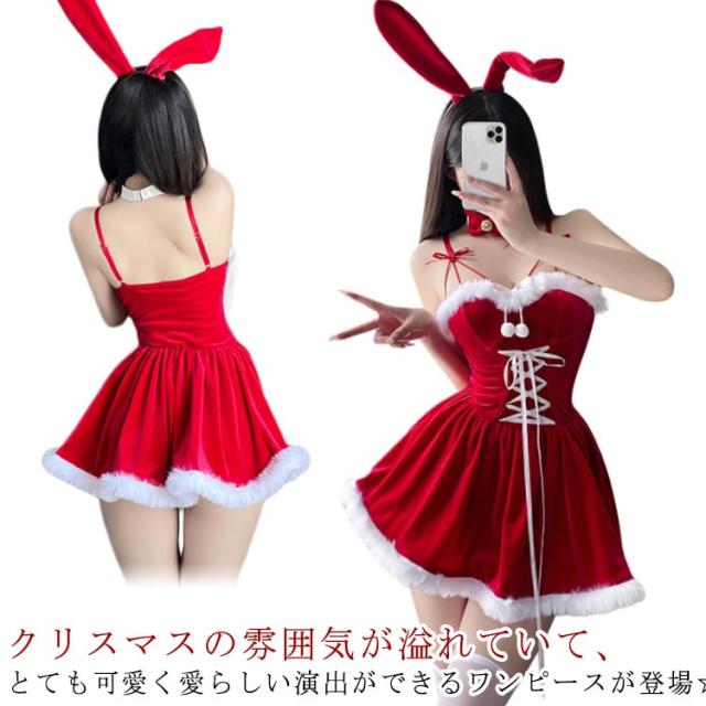 3点セット サンタ コスプレ クリスマス コスチューム ワンピース ドレス レディース コスプレ衣装 仮装 セクシー パーティードレス クリスマス コスプレ サンタコス 大人 ウサギ かわいい クリスマス衣装