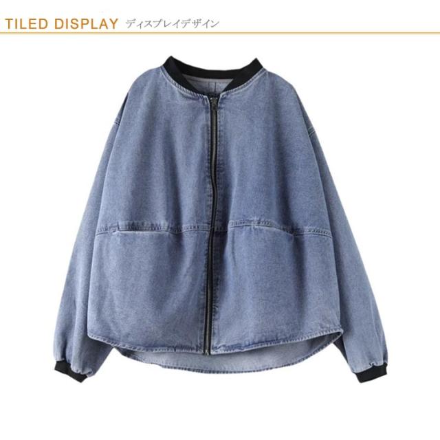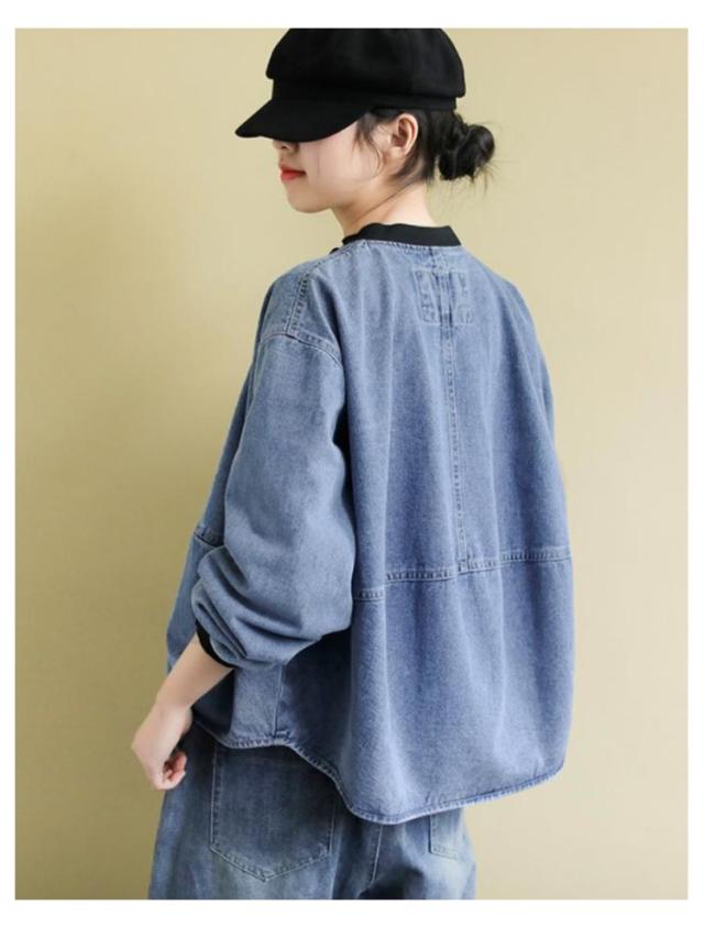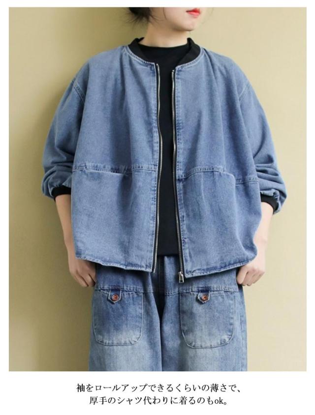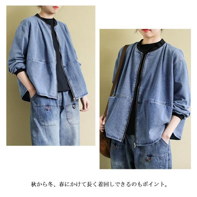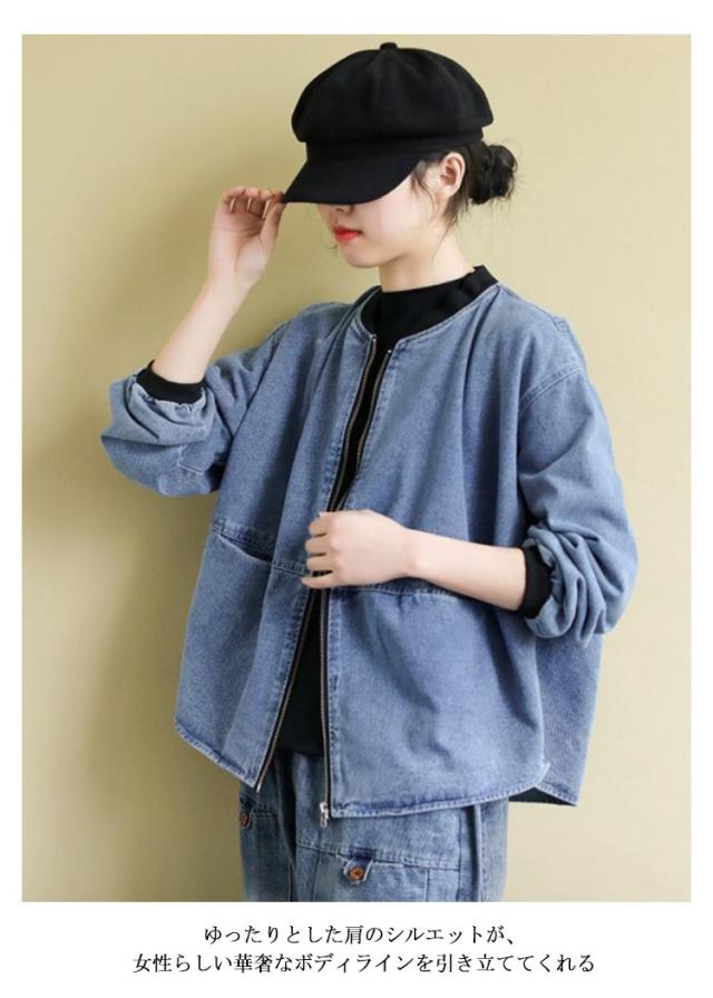ノーカラー ブルゾン ゆったり 長袖 ノーカラーデニムジャケット アウター ジップアップ ショート丈 ジャケット 春服 ジージャン 大きいサイズ レディース カジュアル 20代 30代 40代 50代
