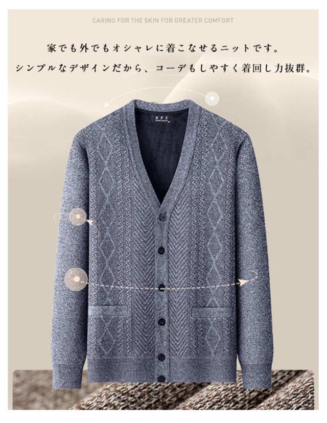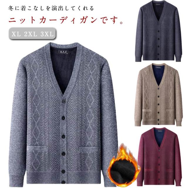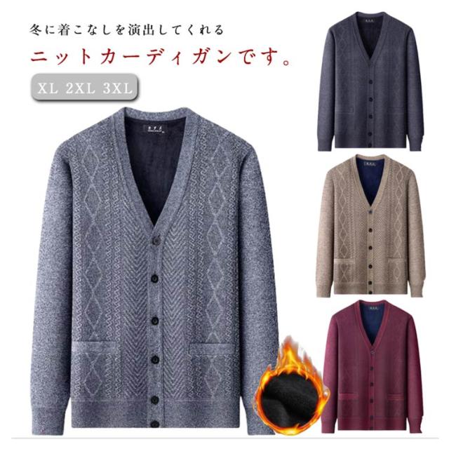 メンズ カーディガン ビジネス ニットカーディガン ニットセーター トップス 前開き 裏起毛 あったか ニットカーディガン カジュアル 防寒 洗える ゴルフ 無地 秋冬 大きいサイズ 男性用 長袖 おしゃれ ゆったり プレゼント