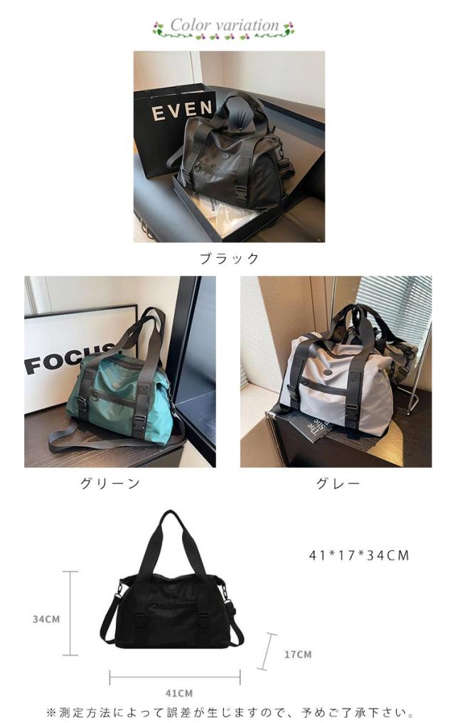| ・雑誌や書類、タブレットはもちろん、傘、水筒など入れます。収納力抜群、旅や日常生活よく使われる小物などの整理整頓に活躍できる素敵一品です。傘、メガネ、財布など必需品がきちんと収まります。お出かけや旅行等で大活躍間違いなしの優秀アイテムです! ・丈夫なナイロン素材は 撥水加工を施しており、雨がかかってもサッと拭き取れます。裏には丈夫なポリエステル生地で作られ、縫製もしっかりし、傷がつきにくく、耐久性が強いです。丈夫で優質な素材は様々な用途で使用できます。 ・出張や旅行用としてだけでなく、ジム、ビジネス、スポーツ、ゴルフ、キャンプや入院など様々な用途で幅広く使えます。大容量なのに機内持ち込み可能なサイズなので修学旅行、合宿、帰省などにも大活躍です! | |