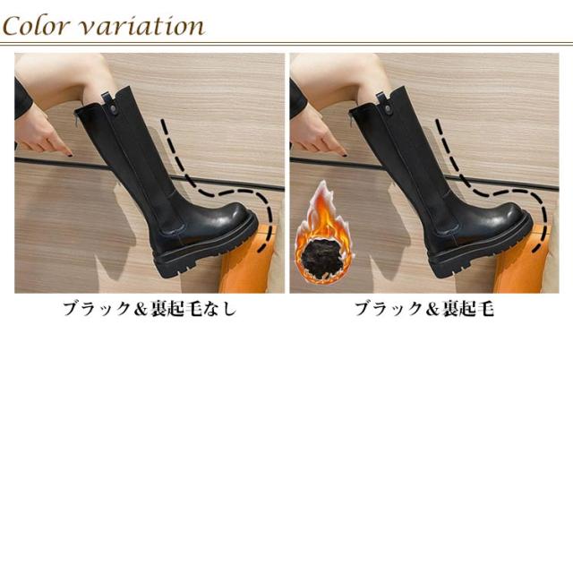 ロングブーツ 裏起毛と裏起毛なし2タイプ レディース サイドゴアブーツ バックファスナー 厚底 トラックソール 筒太め ラウンドトゥ 細見え 足長効果 春 秋 冬 疲れない ゆったり ブーツ 筒周り あたっか 防水 撥水 pu 革ブーツ 防寒 保温 送料無料