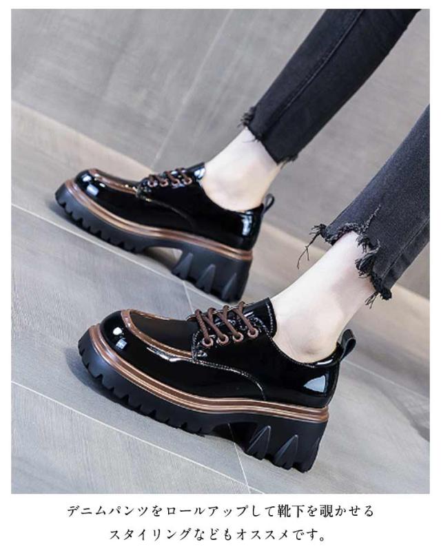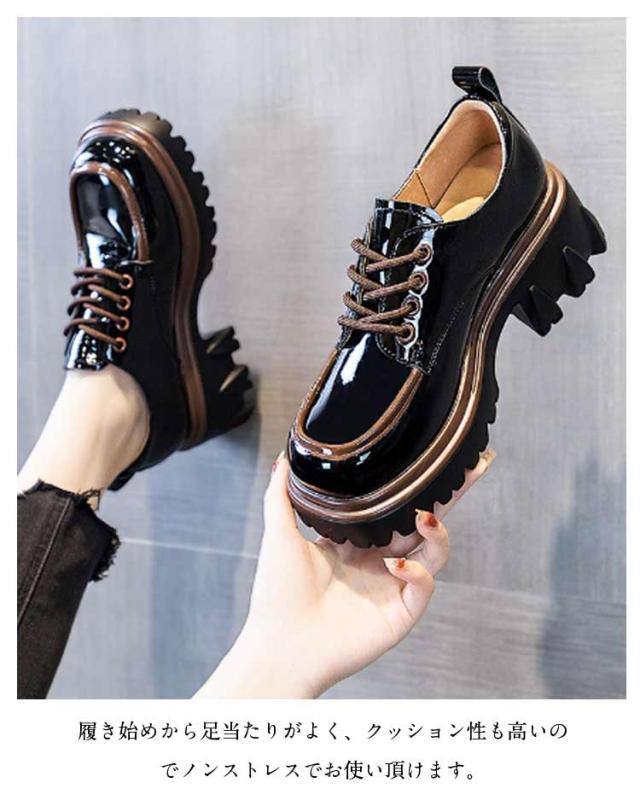革靴 スクールシューズ ローファー 厚底靴 ボリュームソール シューズ ローファー カジュアル レースアップ 厚底ローファー 歩きやすい 疲れにくい 美脚 通勤