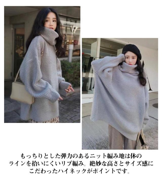 ニット タートルネック タートルニット レディース セーター トップス 長袖 ハイネック ハイネックニット プルオーバーニット ニットセーター ストレッチ 肉厚 体型カバー タートル ゆったり リブ 無地 ナチュラル 秋 冬 軽量 着痩せ 暖かい 防寒 送料無料