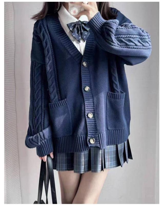 カーディガン 無地 男女兼用 高校生 中学生 通学 制服 スクールカーディガン コスプレ JK制服 学生 Vネック ニット ゆったり ケーブル編み 秋冬 学校 レディース JK衣装 ニットセーター ニットカーディガン 学生服 スクールセーター 学生制服 入学式