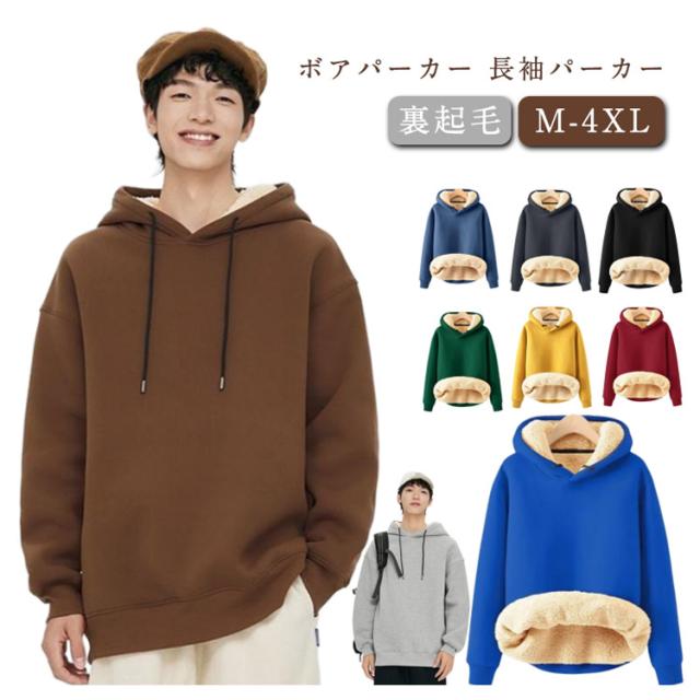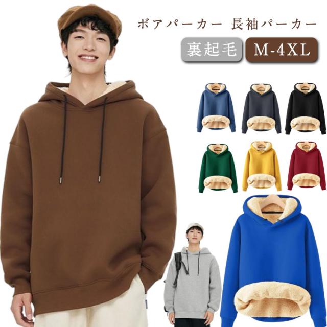 プルオーバー メンズ 暖かい メンズ 裏起毛 ボアパーカー シンプル 長袖パーカー スウェットパーカー フード付き トップス 裏ボア 厚手パーカー ルームウェア パーカー 団体服 防寒 あったか 大きいサイズ