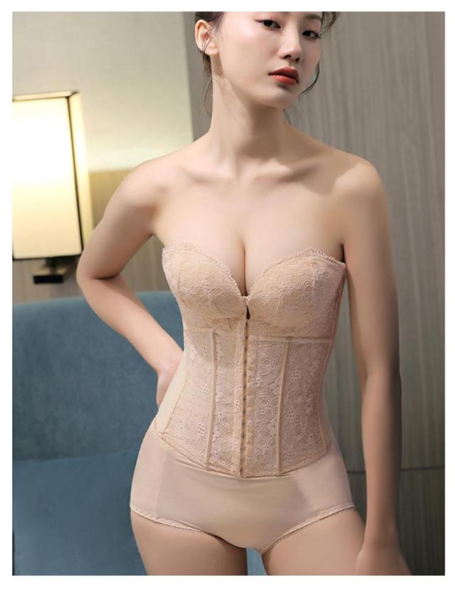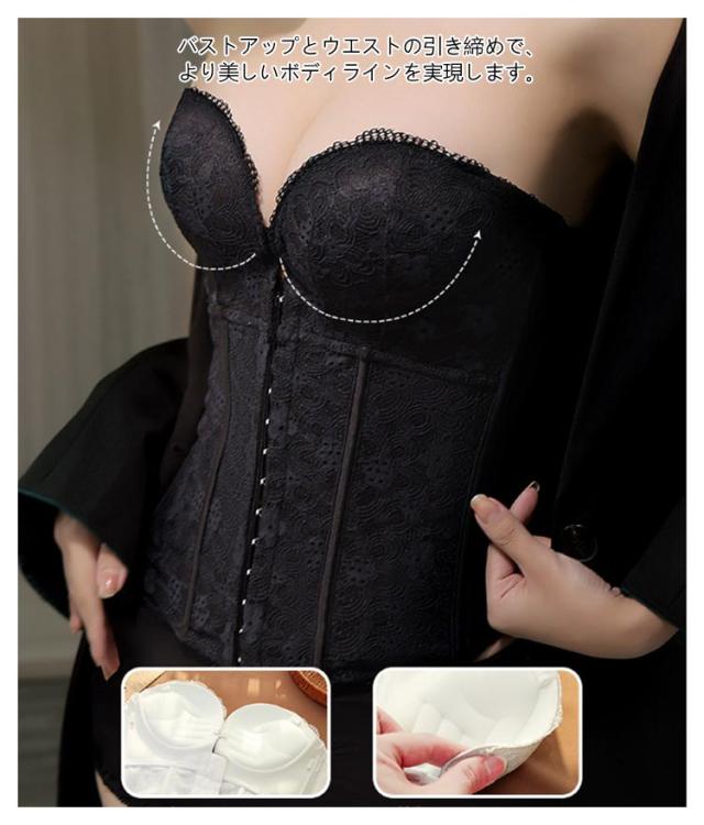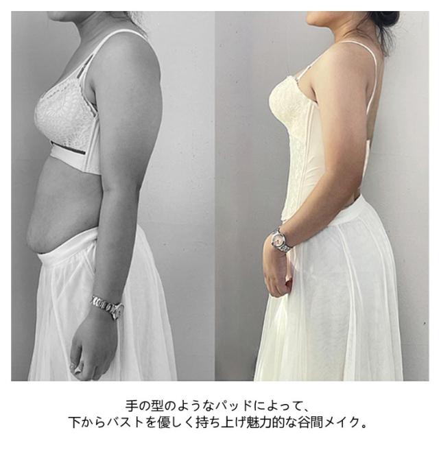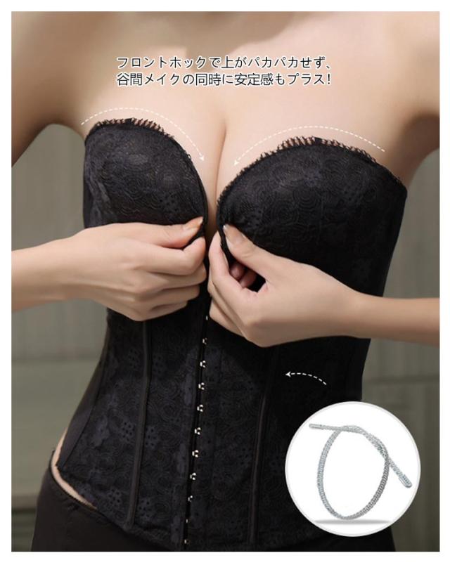| ウエディングスタイルを美しく演出してくれるインナーです。 レースデザインを採用して、上品で綺麗なデザイン、大人の色気を引き出します。 両サイドはポーンがしっかりとサポートし、理想的なボディラインを作り出します。 フロントホックで上がパカパカせず、谷間メイクの同時に安定感もプラス! バックストライプが付き、滑り止めがあり、幅も広めなのでしっかりしています。 バストアップとウエストの引き締めで、より美しいボディラインを実現します。 手の型のようなパッドによって、下からバストを優しく持ち上げ魅力的な谷間メイク。 ドレス用ランジェリーで衣装合わせや前撮り時等におすすめのドレスインナーです。 | |