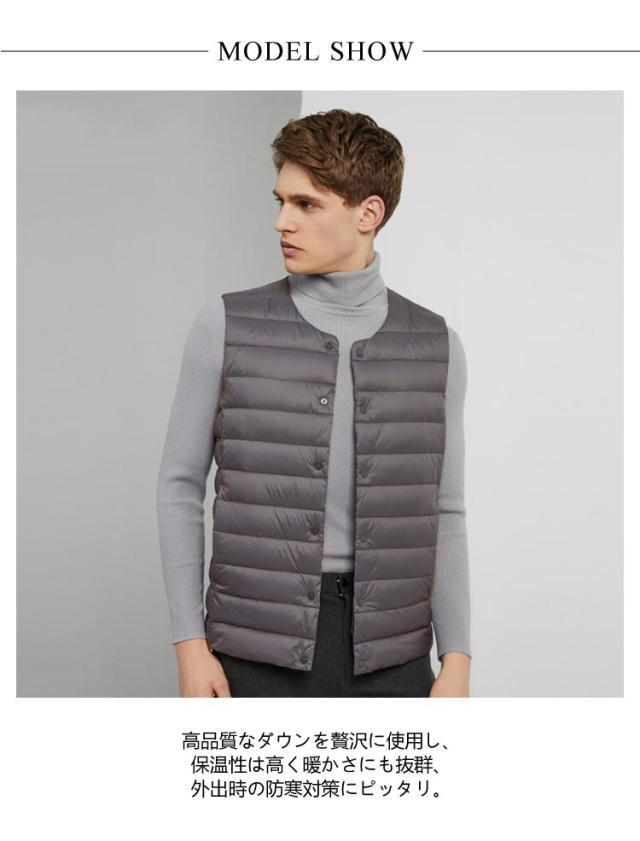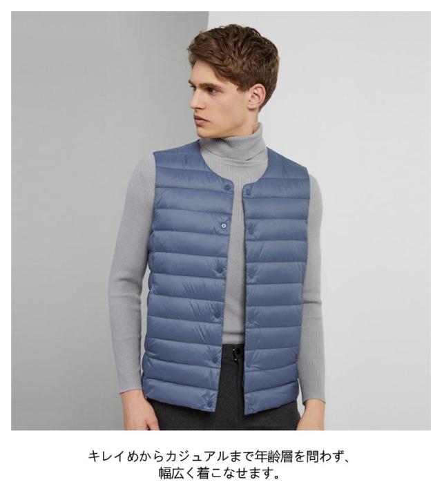 ダウンベスト メンズ 防寒 ベスト スーツベスト 2WAY Vネック インナーベスト クールネック 軽量 暖かい あったか 薄手 ポケット付き カジュアル 登山 アウトドア 釣り ゴルフ スポーツ お洒落 送料無料