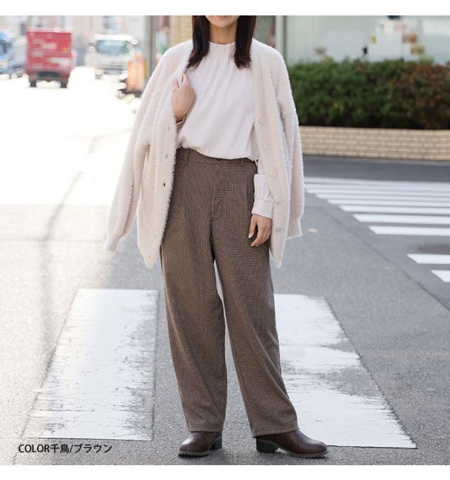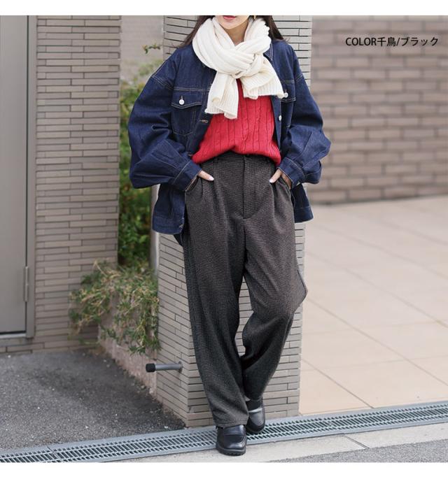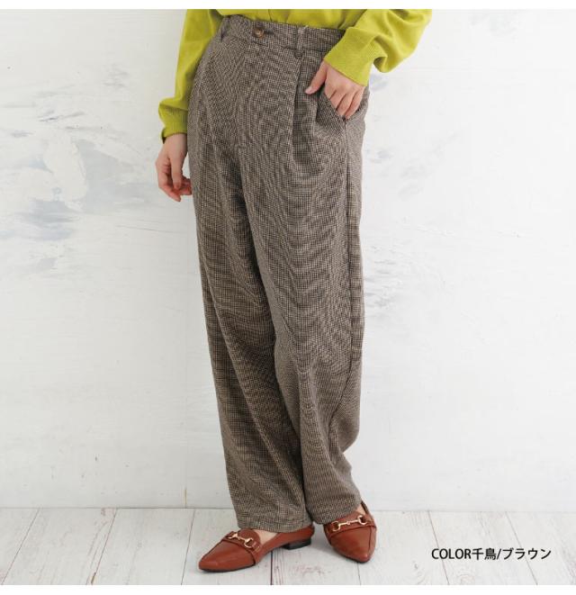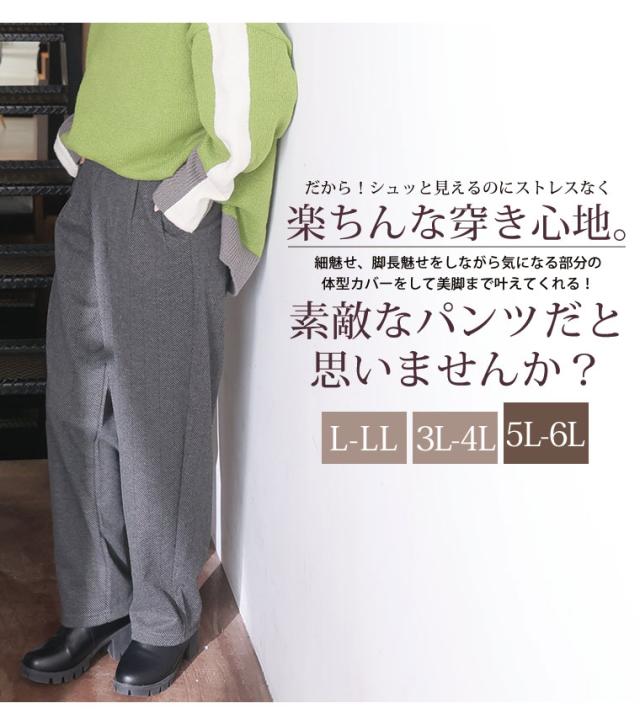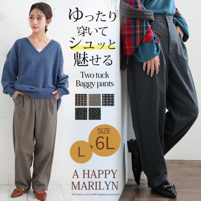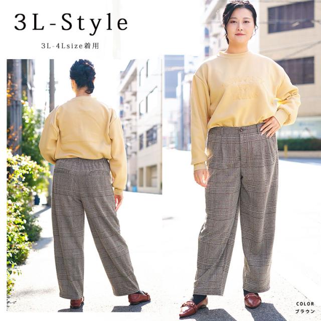 新作 大きいサイズ レディース パンツ | 伸び楽check・ツータック バギーパンツ [861564] LL 3L 4L 5L 6L