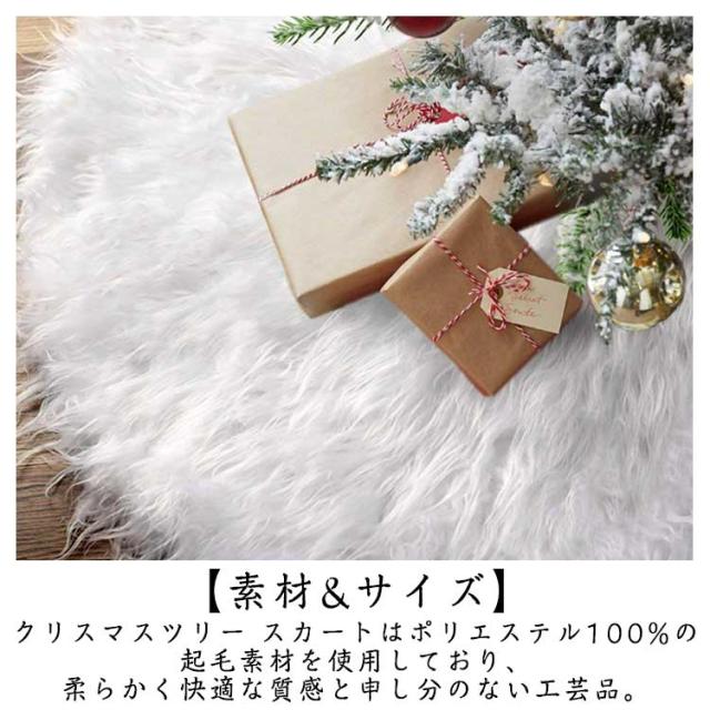 | 【クリスマスムード】ツリースカートはクリスマスツリーの足元をおしゃれに仕上げてくれるアイテム。華やかになる真っ白なファータイプやほっこり感のある人気の北欧柄あり、ツリーやお部屋の雰囲気にあわせて選ぶことが可能です。 【素材&サイズ】クリスマスツリー スカートはポリエステル100%の起毛素材を使用しており、柔らかく快適な質感と申し分のない工芸品。 【取付簡単】着脱はマジックテープ式で、設置が楽にできますよ。手洗いと陰干しすることで、汚れても洗濯することができます。白は汚れが目立つので、洗濯可能なツリースカートがおすすめです。 【再使用可能】クリスマスツリースカートは季節ものなので、繰り返すの使用が可能のため、ツリースカートも布を折り畳むか、分解してコンパクトに収納できると、場所を取らずにしまっておけますよ。 【使用場所】ツリースカートをつけることによってより一層豪華なクリスマスツリーへと変身します。自宅の玄関ドア、学校、幼稚園、オフィス、ホテル、デーパート、家庭、バー、パーティー、喫茶店、スーパーマーケットの素晴らしい装飾です。 | |