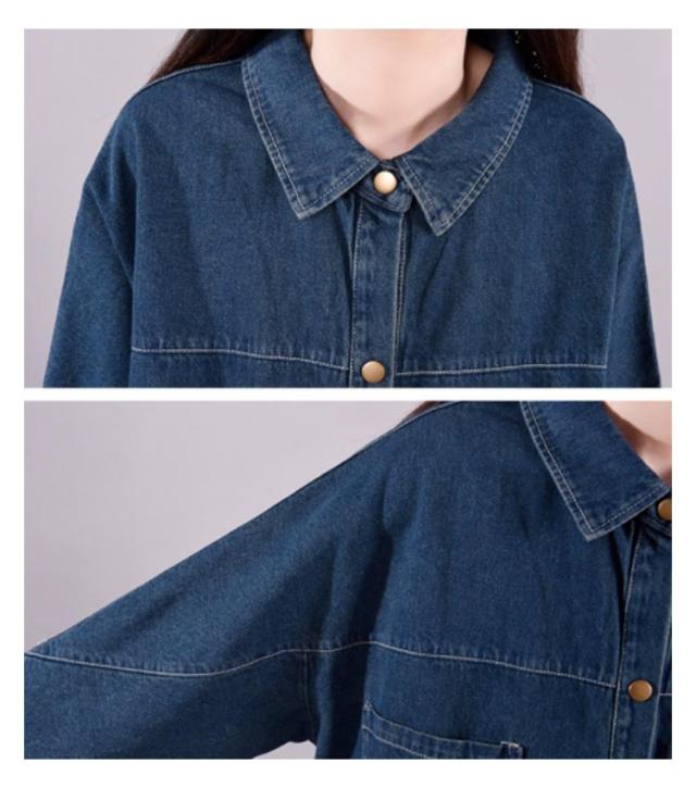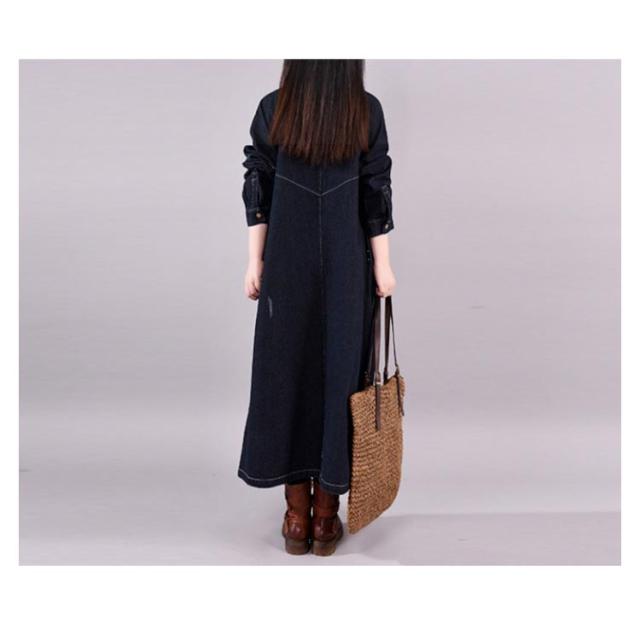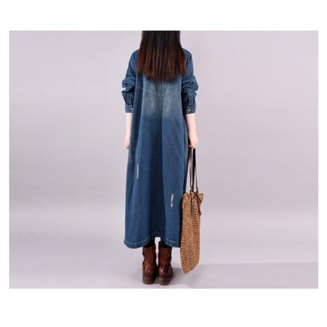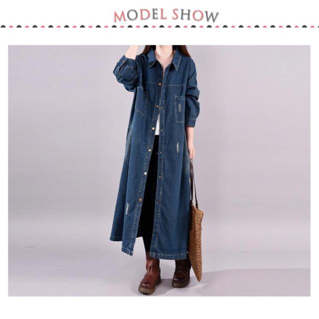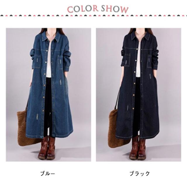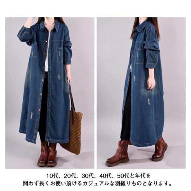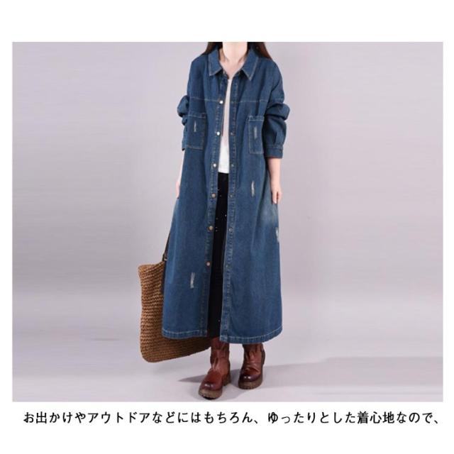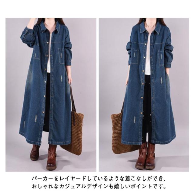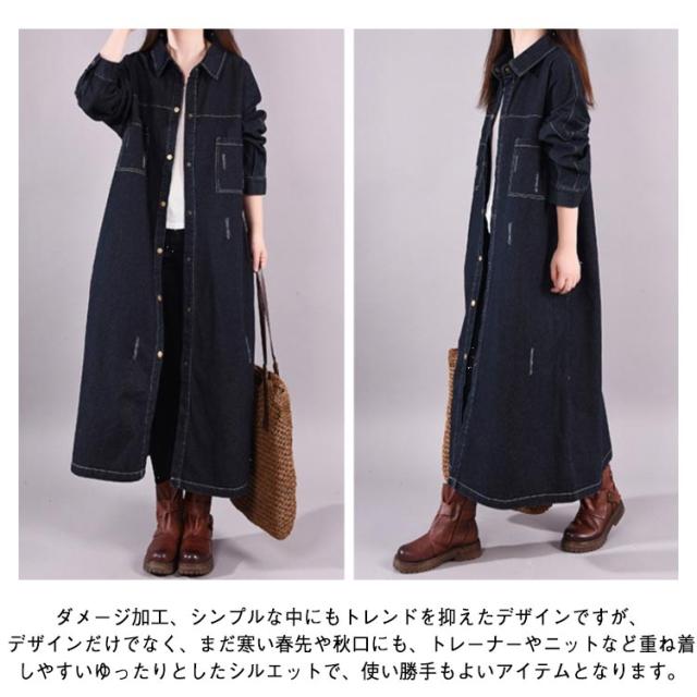 レディース ロング 着痩せ ゆったり デニムシャツ ロング丈 ジャケット デニムシャツ 長袖シャツ カジュアル マキシ丈 体型カバー ダメージ加工 デニムワンピース レトロ 春 秋 L XL