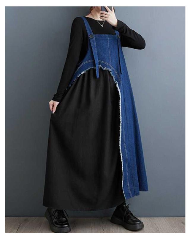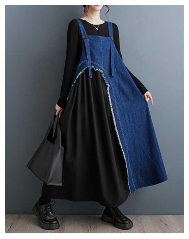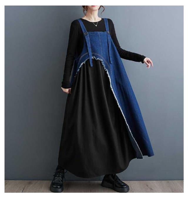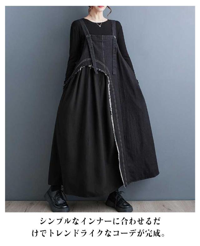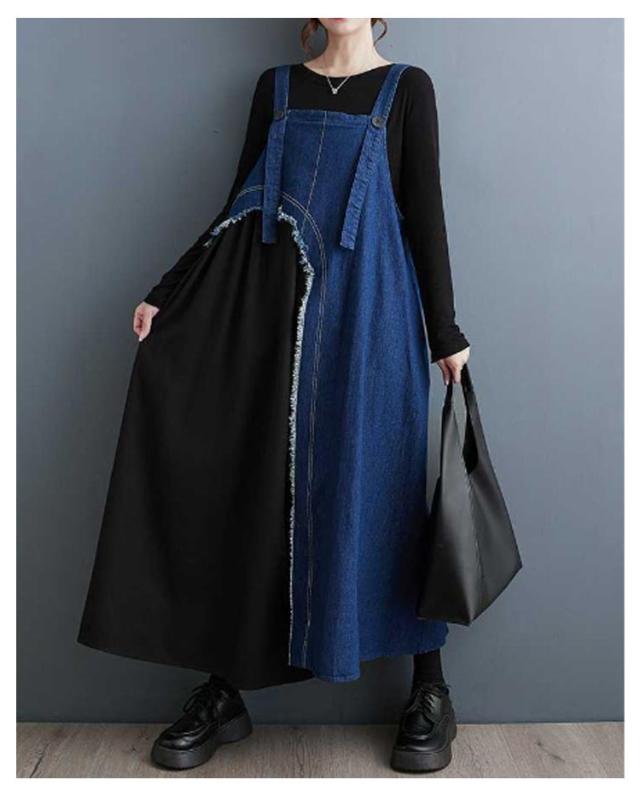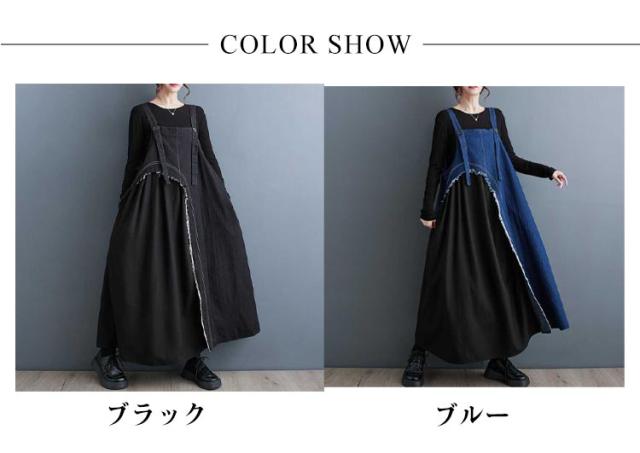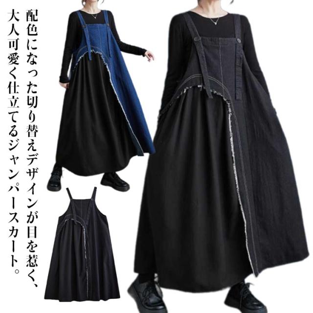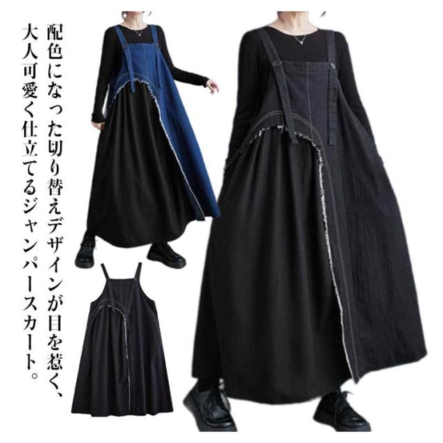 レディース デニムスカート スカート サロペットスカート サロペット ワンピース ジャンスカ ジャンパースカート 異素材切り替え ノースリーブ ジャンパースカート オーバーオール 配色 ロングスカート 大人 ノースリーブ 無地 大きいサイズ