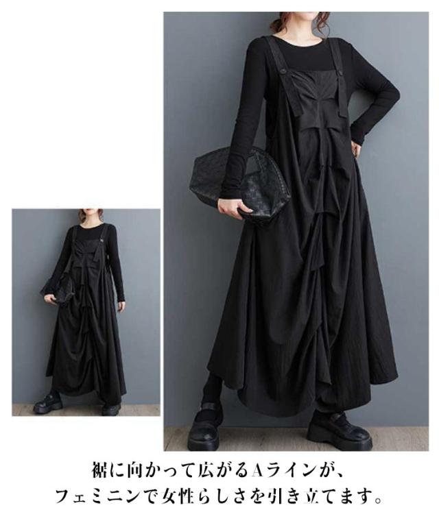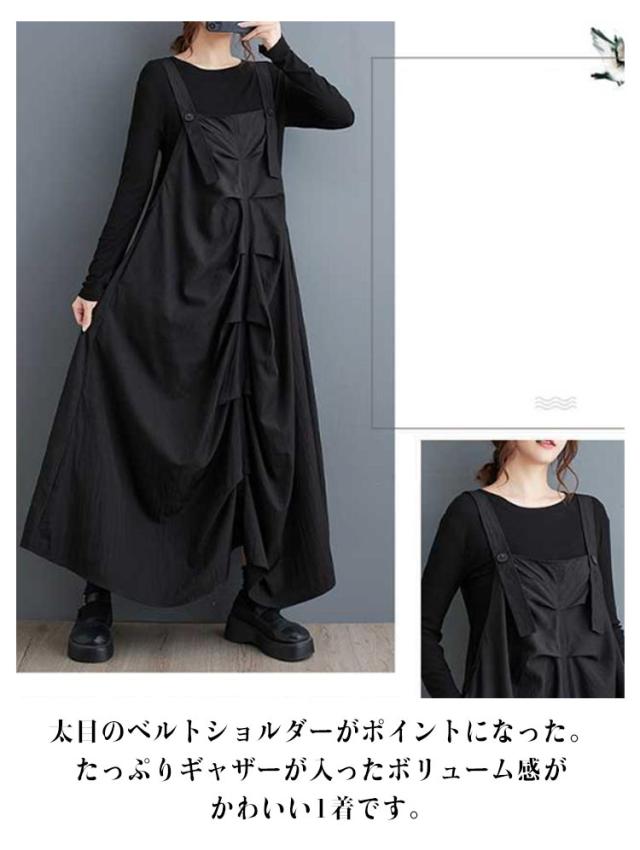 ギャザー入り ワンピース サロペット ジャンパースカート ギャザーワンピース レディース サロペットスカート フレア オールインワン ロングワンピース ギャザー入り キャミワンピース ゆったり