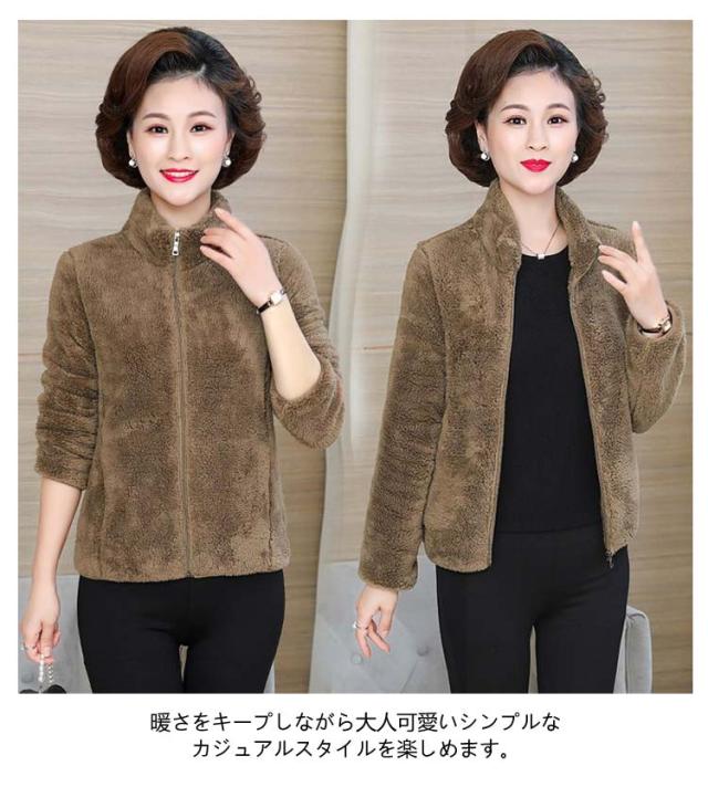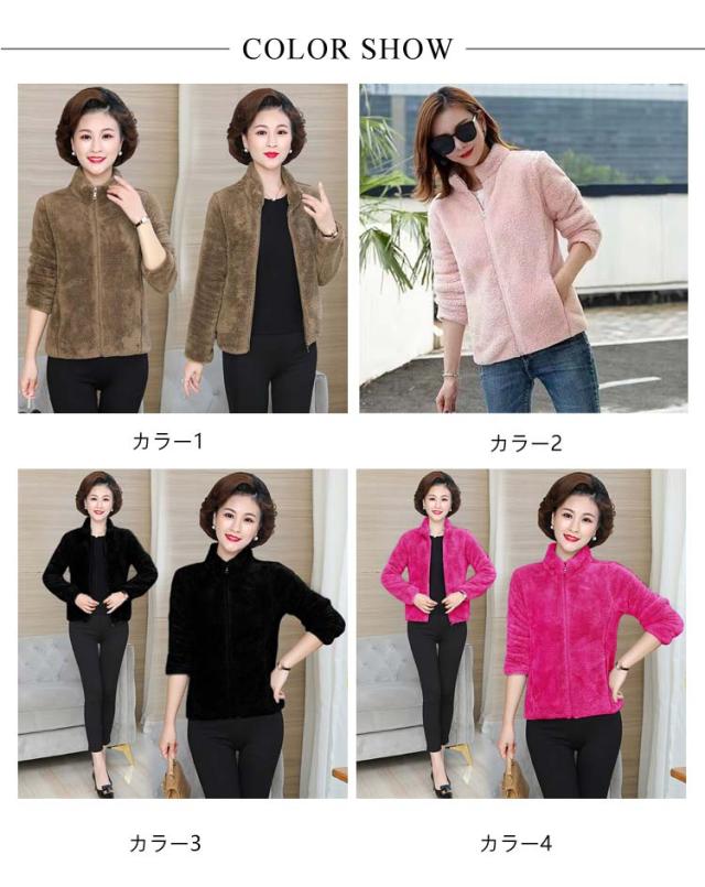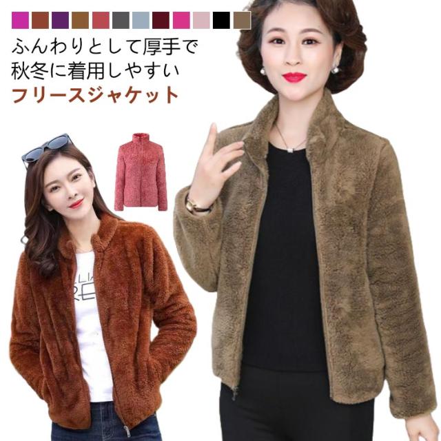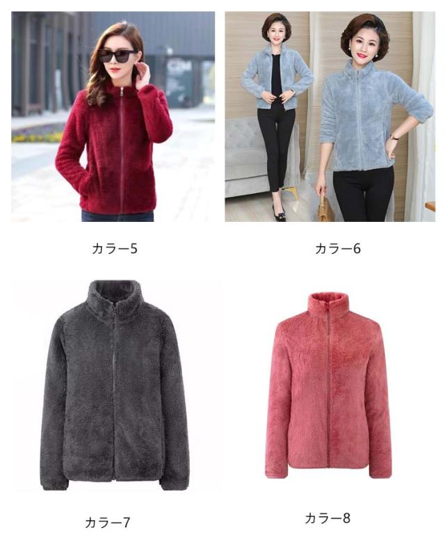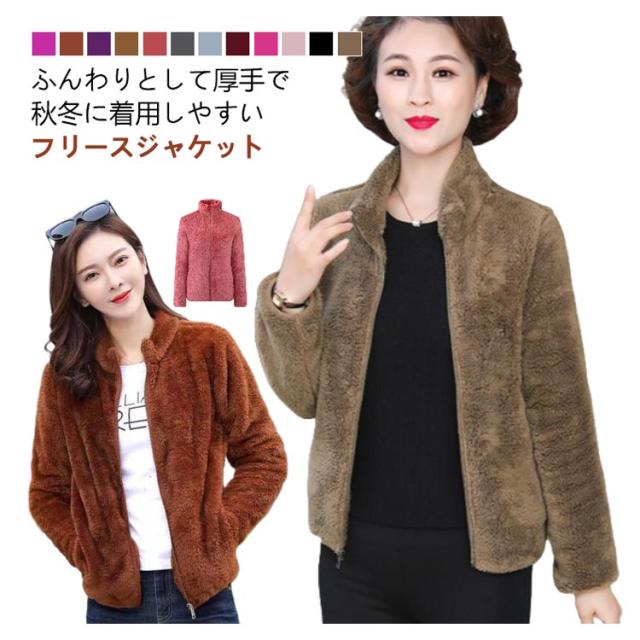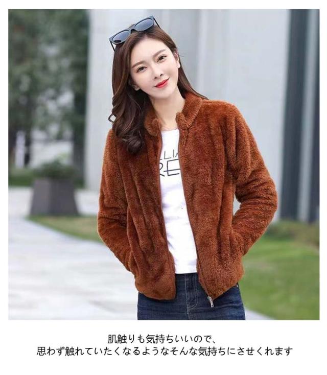 アウター ボア ジャケット フリースジャケット 裏ボア レディース 厚手 スタンドカラー 暖かい ボアコートミドル丈 ショート丈 フリースジャケット ジップアップ 秋冬 防寒 無地 軽量 マイクロフリース ルームウェア もこもこパーカー 羽織 暖か