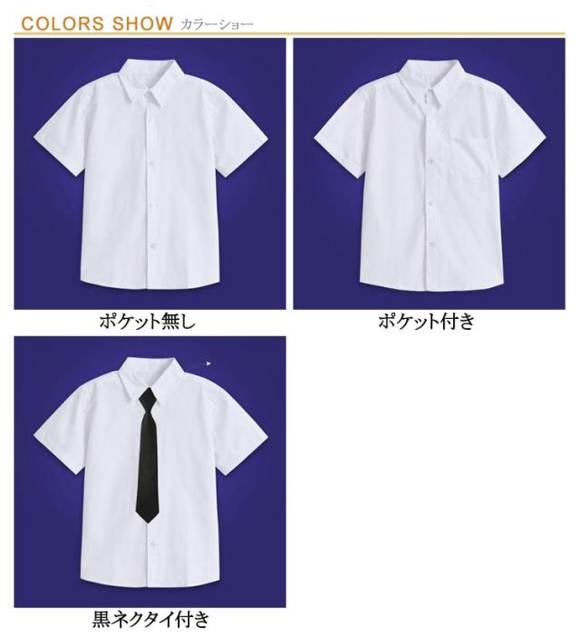 子供 キッズ 半袖 スクールシャツ 小学生 入学準備 男子 入学 入園 シャツ ネクタイ付き 中学生 通学 ジュニア 男の子 通園 160 ワイシャツ 発表会 白 女の子 フォーマル お受験 面接 無地 衣替え ポケット付き 80 90 100 110 120 130 140 150 制服 送料無料