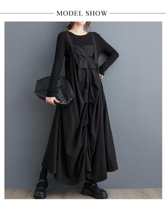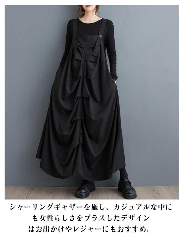 レディース ワンピース ギャザー入り サロペット ジャンパースカート ギャザー入り サロペットスカート スカート オールインワン ロングワンピース ギャザーワンピース キャミワンピース ゆったり