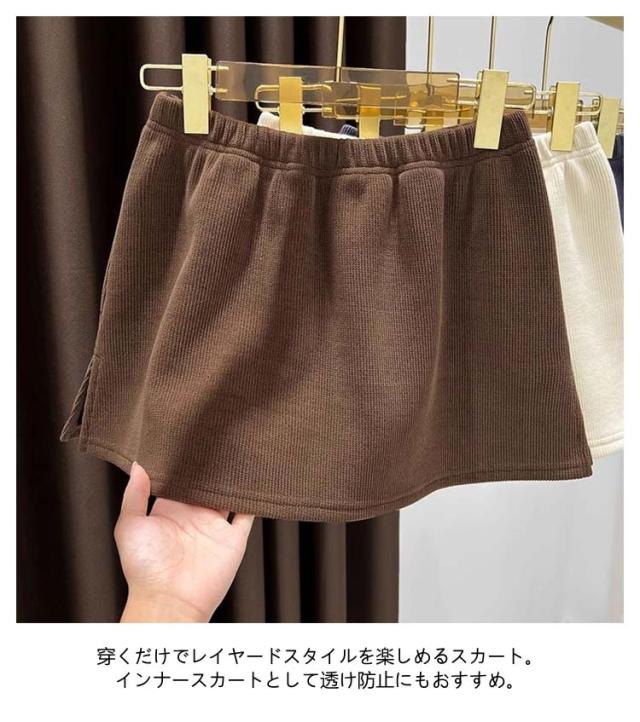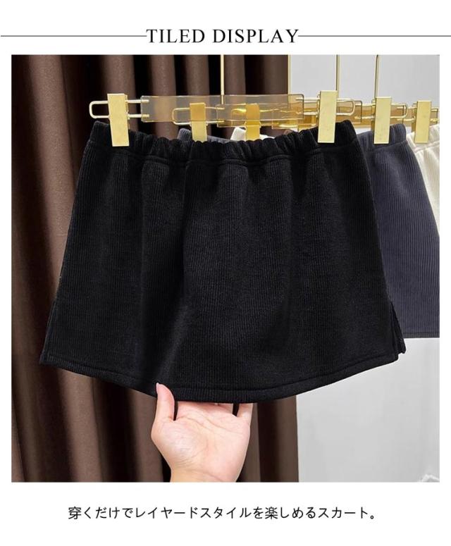 送料無料 つけ裾 付け裾 レイヤードスカート インナースカート ウエストゴム ミニスカート サイドスリット入り 裏フリース レイヤードスカート トレイヤード 重ね着 体型カバー あったかグッズ 裏起毛