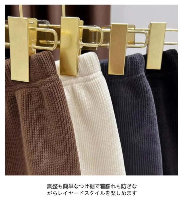 | お尻がすっぽりと隠れて下半身をスッキリ見せ!穿くだけでレイヤードスタイルを楽しめるスカート。 調整も簡単なつけ裾で着膨れも防ぎながらレイヤードスタイルを楽しめます♪ 両サイドのスリット入りで、女性らしさをアピール、すっきりとして動きやすいデザイン。 お手持ちのトップスやボトムスに合わせていただければ簡単に体型カバー! 穿くだけでレイヤードスタイルを楽しめるスカート。インナースカートとして透け防止にもおすすめ。 | |
