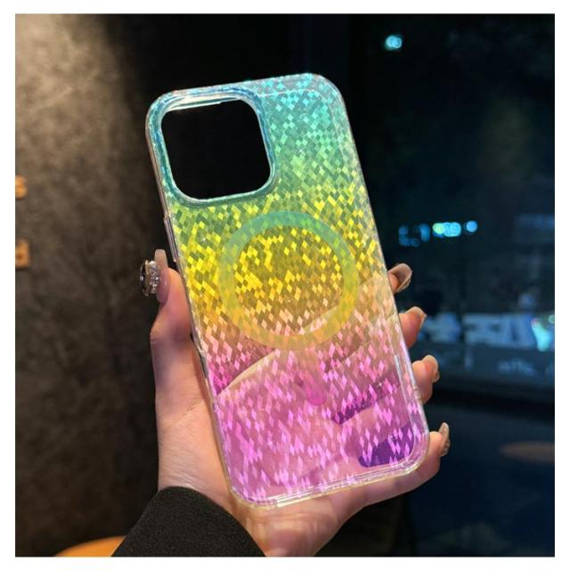 | 【オーロラ】【キラキラ】 【マグネット内蔵・磁力吸着】 iPhoneの色や見る角度でベースカラーが変わる大人かわいいデザイン! カメラホールの縁が高く擦り傷からカメラを保護できます。 | |