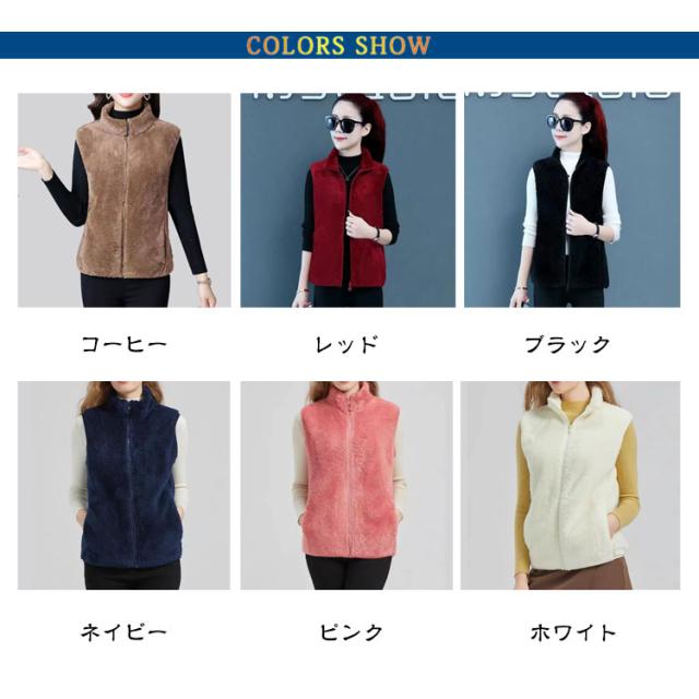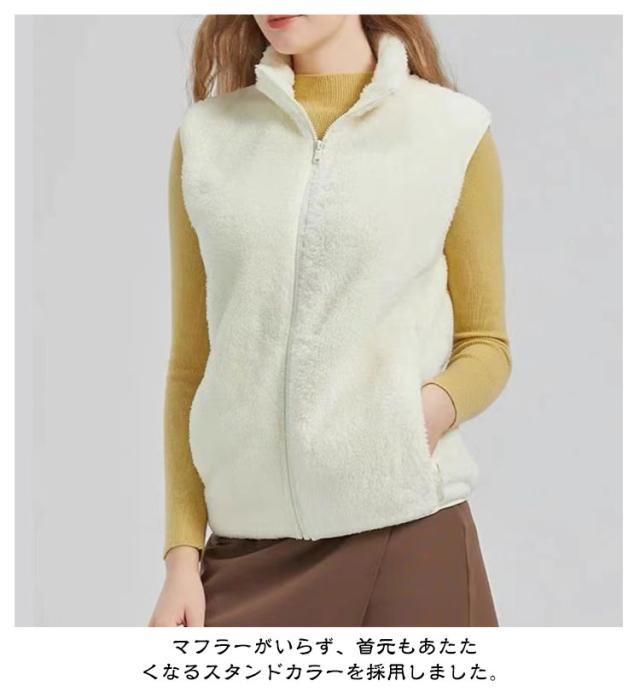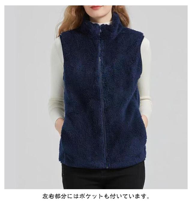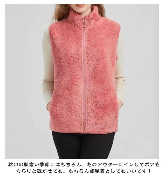 ふわふわ フリースベスト ボアベスト フリースジャケット 秋冬 フリースベスト ベスト ジレ レディース 前開き もこもこ アウター ノースリーブ 袖なし 厚手 スタンドカラー 立ち襟 ルームウェア パジャマ 毛布 部屋着 防寒