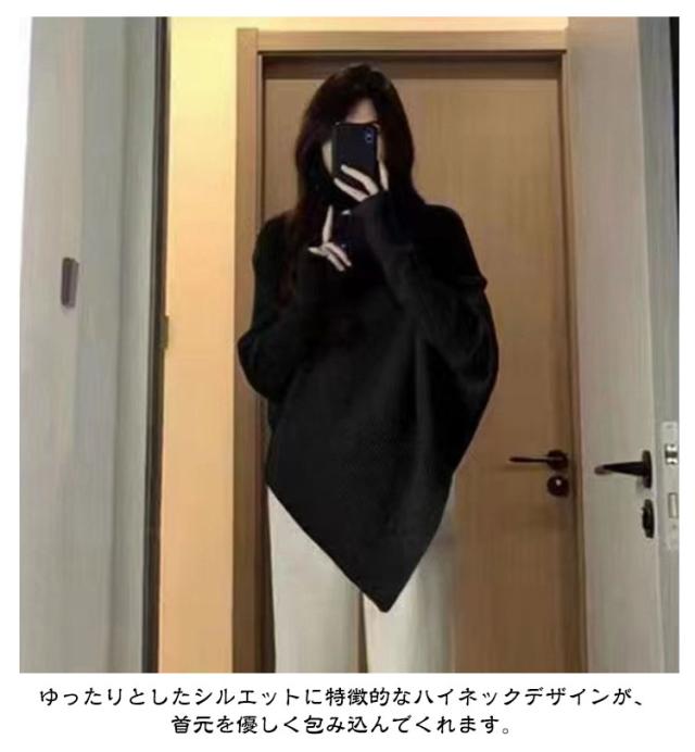| 【アシメトリー】【4color】 個性的な秋冬の装いを楽しむためのおしゃれなハイネックリブニット。 シンプルでありながらも、独自のデザインが魅力的で、【一枚で着映え】するオシャレなニットです。 ゆったりとしたシルエットに特徴的なハイネックデザインが、首元を優しく包み込んでくれます。 | |