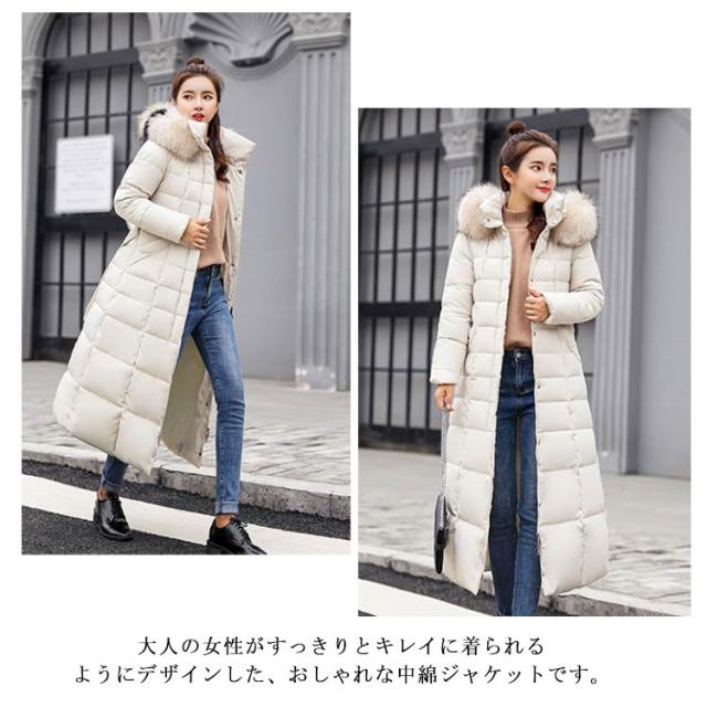 軽量 レディース ロングコート 中綿入り アウター フード付き ダウンジャケット 中綿コート ファー付き ベルト付き きれいめ 着痩せ 超ロング 厚手 撥水 防寒 防風 あったか 保温 おしゃれ 通勤 超ロング おしゃれ 普段使い