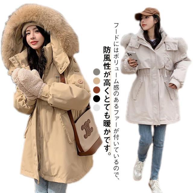 ミディアム丈 冬 モッズコート 裏起毛 アウター 防寒 中綿コート 中綿 裏ボア ボアジャケット ファー フード付き コート 大きいサイズ 裏ボア もこもこ 暖かい 厚手 防風 あったか ファーフード おしゃれ カジュアル 韓国風