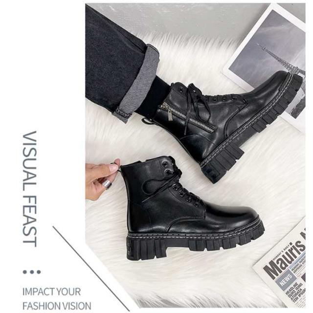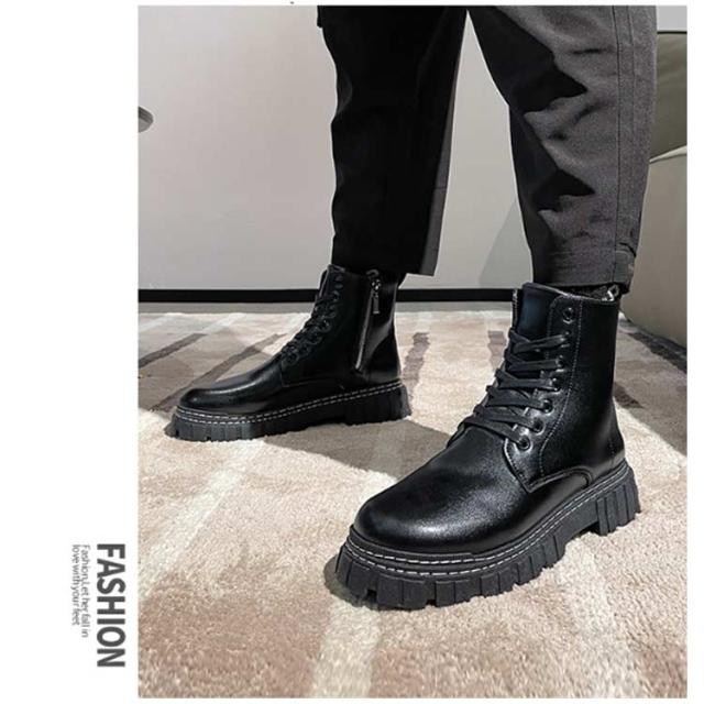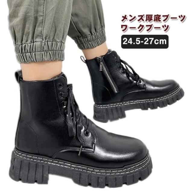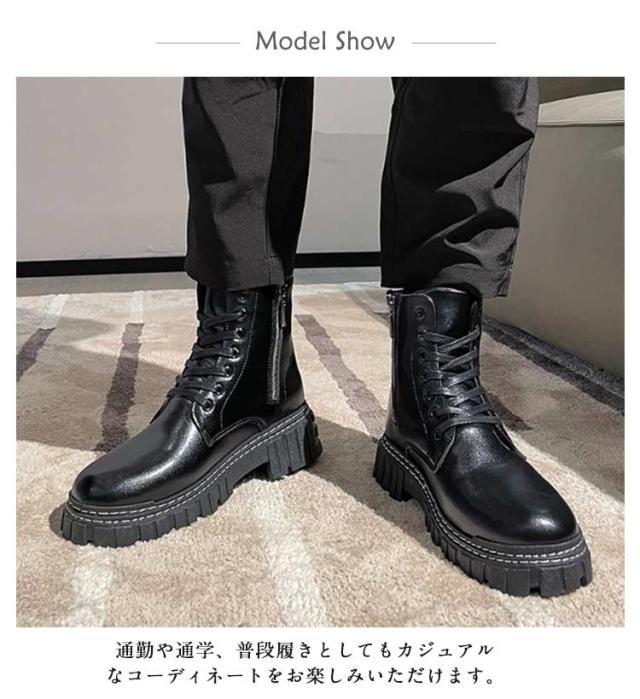 | メンズ厚底ブーツ ワークブーツ ゴムのソールは耐摩耗性、衝撃吸収性、滑り抵抗性があるので、様々な地形で自由に歩くことができる。 通勤や通学、普段履きとしてもカジュアルなコーディネートをお楽しみいただけます。 | |
