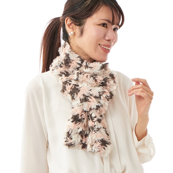 エコファーを織り込みカスリ風の柄に仕上げたミニマフラー。