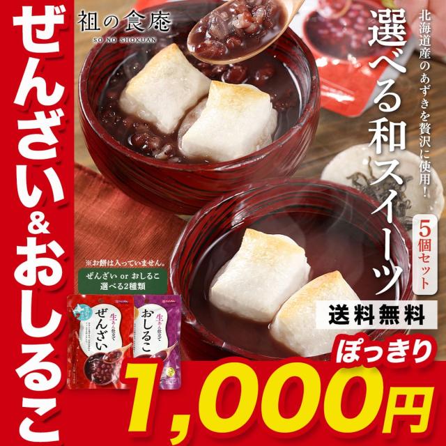 送料無料 1,000円 ぽっきり ポッキリ 選べる和スイーツ 140g×5袋セット 2種類から選べる⇒( ぜんざい5袋 / おしるこ5袋 ) 小豆 レンチン レトルト 和 あんこ 国産 あずき おやつ こしあん つぶあん お菓子 冷やしぜんざい お取り寄せ グルメ