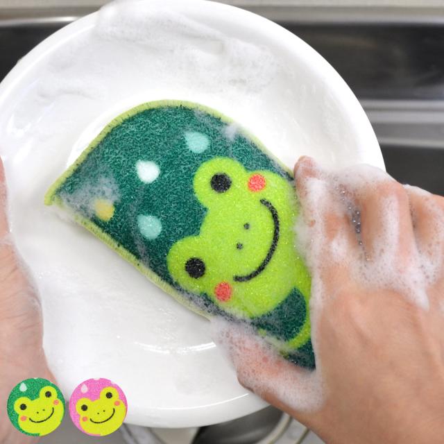 ●カエルの絵柄がかわいい食器洗いスポンジです。