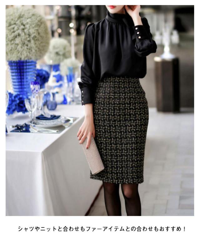 タイトスカート ひざ丈 スカート スリット ツイード 秋冬 上品 ペンシルスカート ハイウエスト チェック バックスリット 冬 通勤 オフィス フォーマル 春 エレガント 秋 膝上 L S M ミディアム丈 XL 2XL
