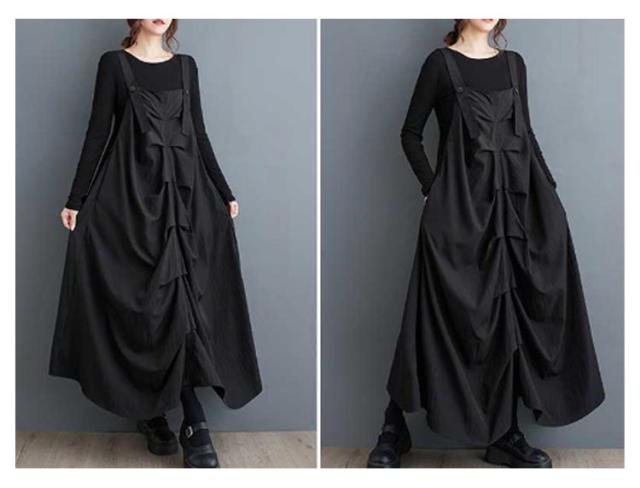 ギャザー入り ギャザー入り サロペット スカート ワンピース レディース サロペットスカート フレア ジャンパースカート ロングワンピース ギャザーワンピース キャミワンピース ゆったり