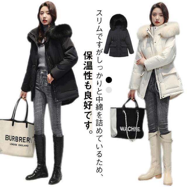中綿コート レディース ダウンジャケット 中綿 保温コート ダウンコート ダウンジャケット フェイクファー あったか 大きいサイズ 厚手 フード付き アウター 冬物 防風 ファー おしゃれ Aライン 寒さ対策 20代30代40代 通勤