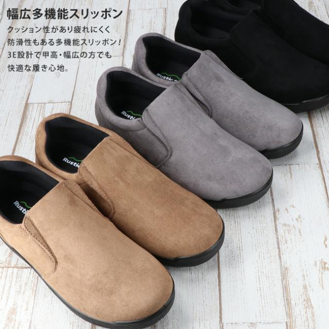 スリッポン メンズ 幅広 3E 甲高 軽量 疲れない 履きやすい 歩きやすい ラスティックスタイル 1904 黒 通勤 シューズ 靴